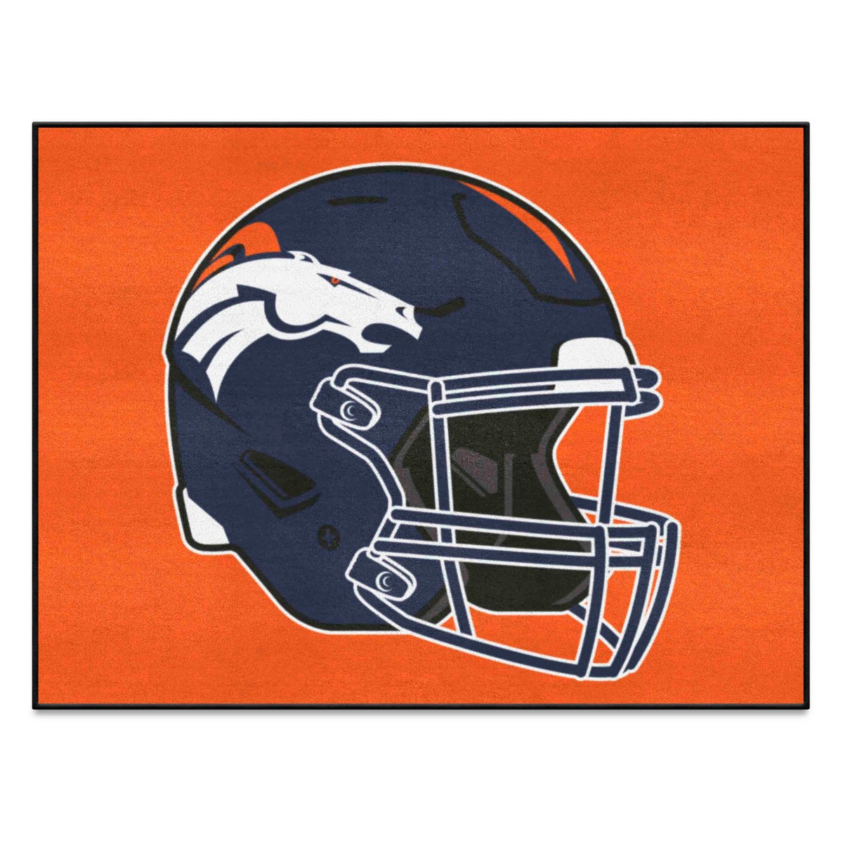 | Denver Broncos All-Star Rug - 34 in. x 42.5 in., Helmet Logo 9 Ounce, 100 % Nylon Face Recycled vinyl backing for a durable and longer-lasting product Machine made and tufted in the USA Non-skid backing with serged borders for added durability Machine washable; vacuum regularly and spot clean for any easy and quick clean Officially licensed and chromojet-printed in true team colors for vibrant, lasting color NFL - Denver Broncos in Colorado NFL National Football League |