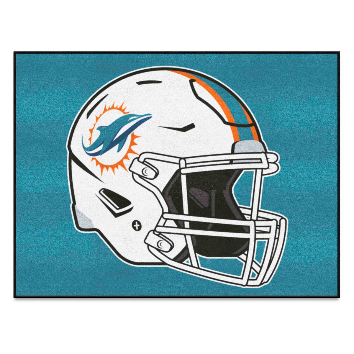 | Miami Dolphins All-Star Rug - 34 in. x 42.5 in., Helmet Logo 9 Ounce, 100 % Nylon Face Recycled vinyl backing for a durable and longer-lasting product Machine made and tufted in the USA Non-skid backing with serged borders for added durability Machine washable; vacuum regularly and spot clean for any easy and quick clean Officially licensed and chromojet-printed in true team colors for vibrant, lasting color NFL - Miami Dolphins in Florida NFL National Football League |
