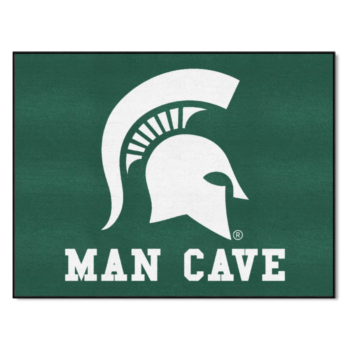 | Michigan State Spartans Man Cave All-Star Rug - 34 in. x 42.5 in. 9 Ounce, 100 % Nylon Face Recycled vinyl backing for a durable and longer-lasting product Machine made and tufted in the USA Non-skid backing with serged borders for added durability Machine washable; vacuum regularly and spot clean for any easy and quick clean Officially licensed and chromojet-printed in true team colors for vibrant, lasting color Michigan State University in Michigan |