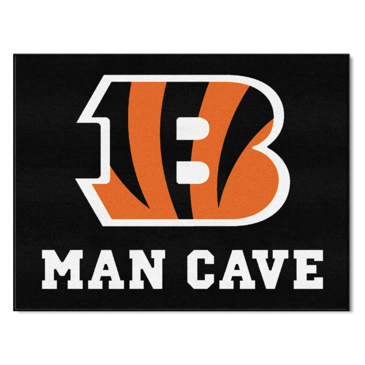 | Cincinnati Bengals Man Cave All-Star Rug - 34 in. x 42.5 in. 9 Ounce, 100 % Nylon Face Recycled vinyl backing for a durable and longer-lasting product Machine made and tufted in the USA Non-skid backing with serged borders for added durability Machine washable; vacuum regularly and spot clean for any easy and quick clean Officially licensed and chromojet-printed in true team colors for vibrant, lasting color NFL - Cincinnati Bengals in Ohio NFL National Football League |