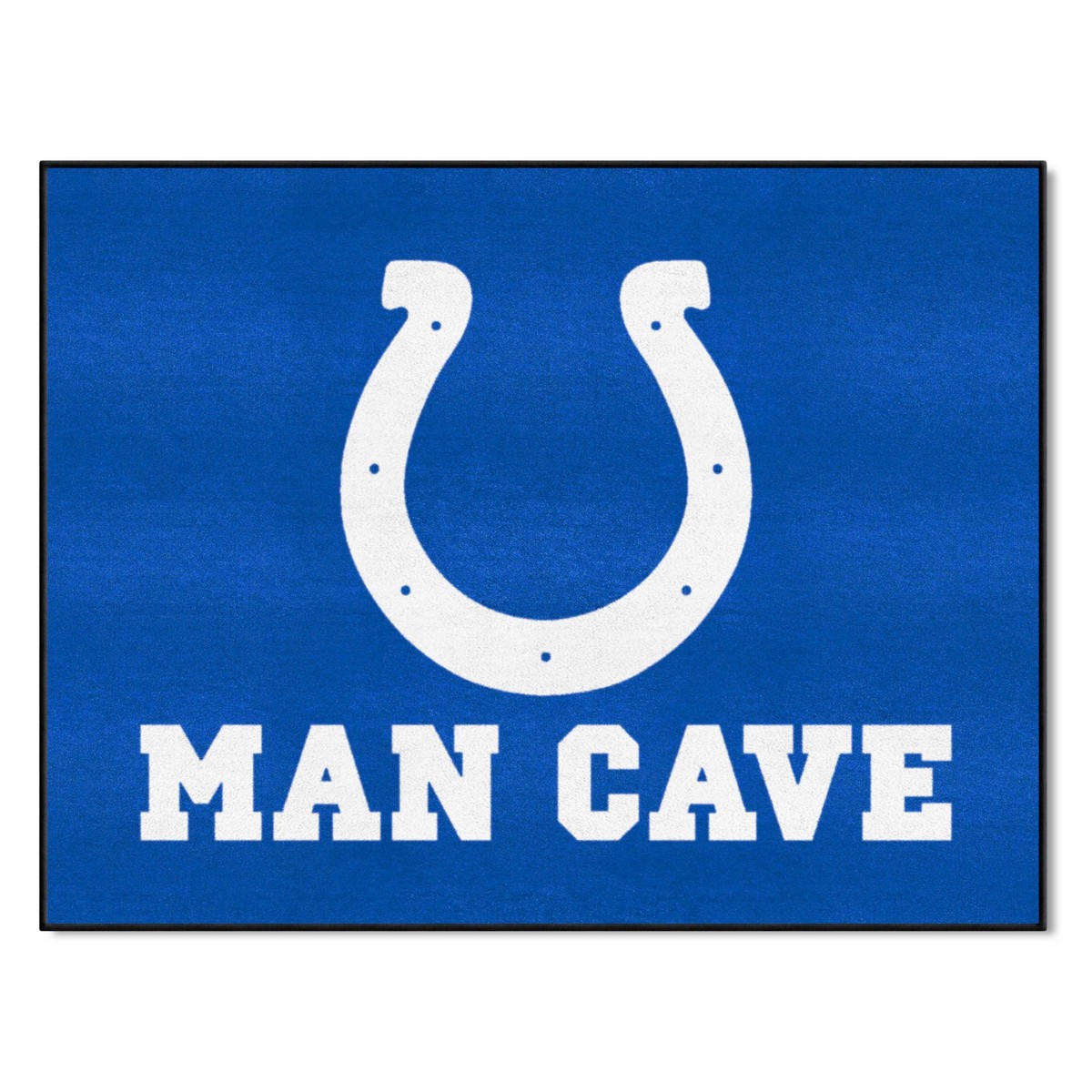 | Indianapolis Colts Man Cave All-Star Rug - 34 in. x 42.5 in. 9 Ounce, 100 % Nylon Face Recycled vinyl backing for a durable and longer-lasting product Machine made and tufted in the USA Non-skid backing with serged borders for added durability Machine washable; vacuum regularly and spot clean for any easy and quick clean Officially licensed and chromojet-printed in true team colors for vibrant, lasting color NFL - Indianapolis Colts in Indiana NFL National Football League |