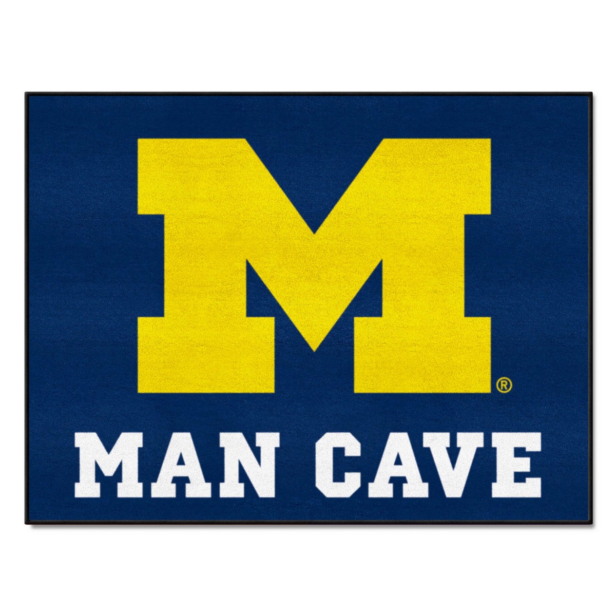 | Michigan Wolverines Man Cave All-Star Rug - 34 in. x 42.5 in. 9 Ounce, 100 % Nylon Face Recycled vinyl backing for a durable and longer-lasting product Machine made and tufted in the USA Non-skid backing with serged borders for added durability Machine washable; vacuum regularly and spot clean for any easy and quick clean Officially licensed and chromojet-printed in true team colors for vibrant, lasting color University of Michigan in Michigan |