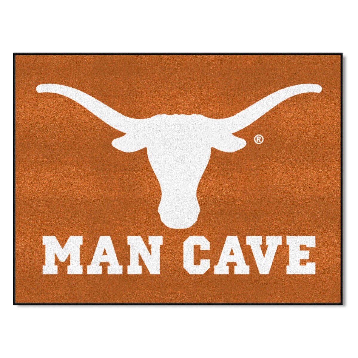 | Texas Longhorns Man Cave All-Star Rug - 34 in. x 42.5 in. 9 Ounce, 100 % Nylon Face Recycled vinyl backing for a durable and longer-lasting product Machine made and tufted in the USA Non-skid backing with serged borders for added durability Machine washable; vacuum regularly and spot clean for any easy and quick clean Officially licensed and chromojet-printed in true team colors for vibrant, lasting color University of Texas in Texas |