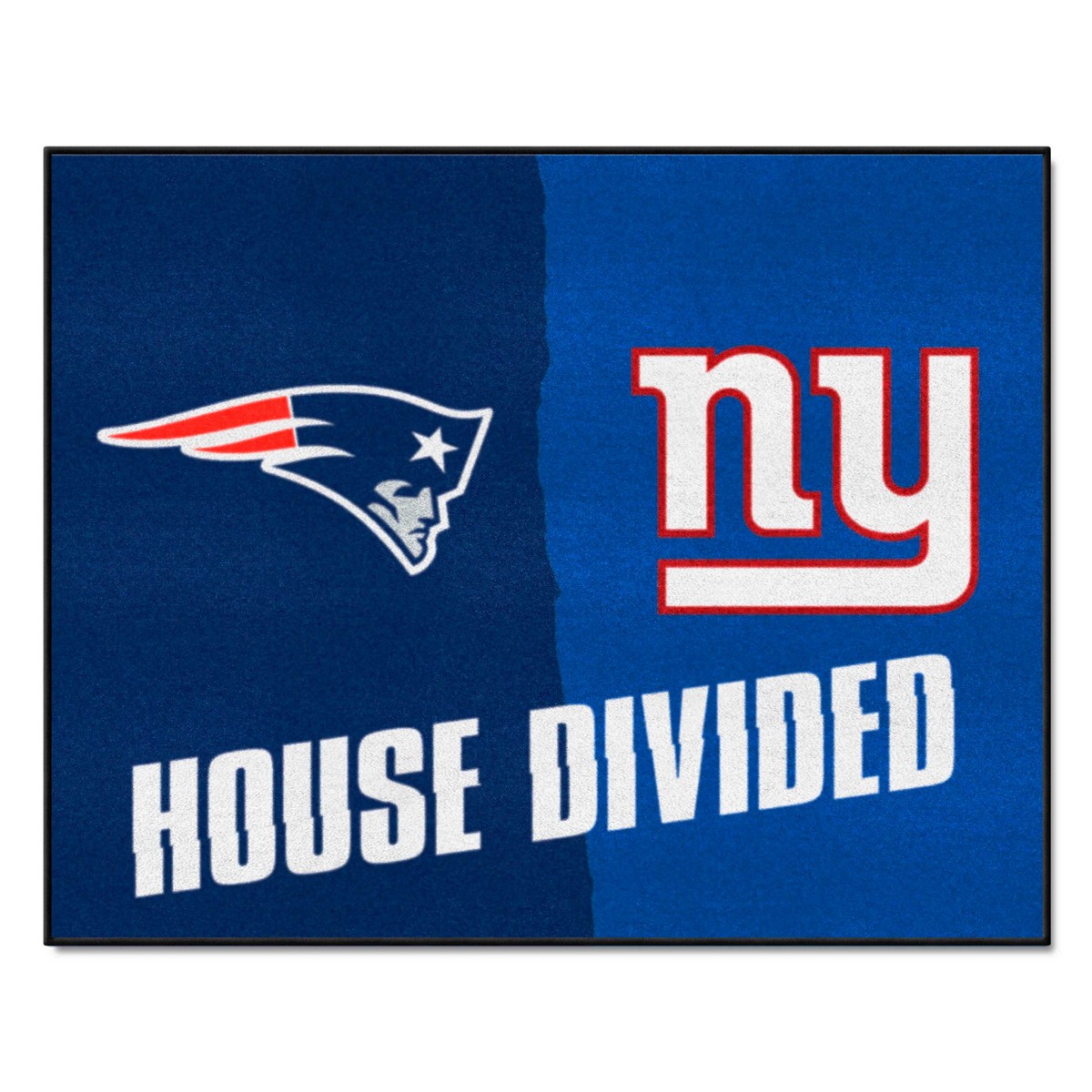 | NFL House Divided - Patriots / Giants House Divided Rug - 34 in. x 42.5 in. 9 Ounce, 100 % Nylon Face Recycled vinyl backing for a durable and longer-lasting product Machine made and tufted in the USA Non-skid backing with serged borders for added durability Machine washable; vacuum regularly and spot clean for any easy and quick clean Officially licensed and chromojet-printed in true team colors for vibrant, lasting color NFL House Divided - Patriots / Giants in N/A NFL National Football League |