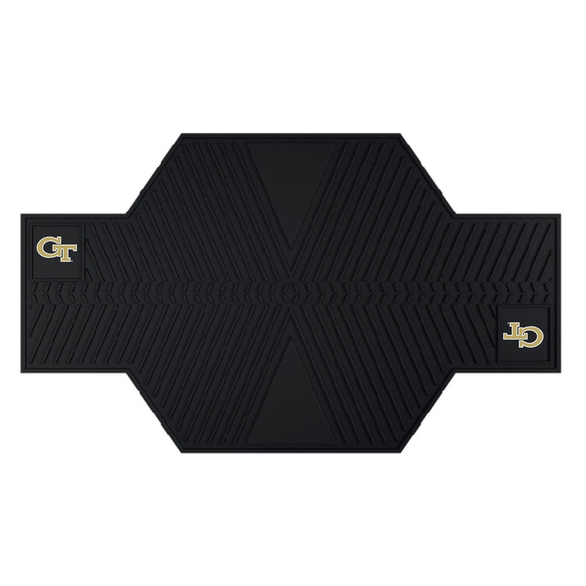 | Georgia Tech Yellow Jackets Motorcycle Mat Oil resistant Grip-style backing keeps mat in place Designed to catch dirt, debris, and even oil 5/16" thickness Features two 3D molded team logos Easily cleaned with a water hose Georgia Tech in Georgia |