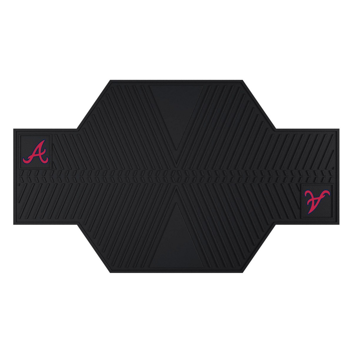 | Atlanta Braves Motorcycle Mat Oil resistant Grip-style backing keeps mat in place Designed to catch dirt, debris, and even oil 5/16" thickness Features two 3D molded team logos Easily cleaned with a water hose MLB - Atlanta Braves in Georgia MLB Major League Baseball |
