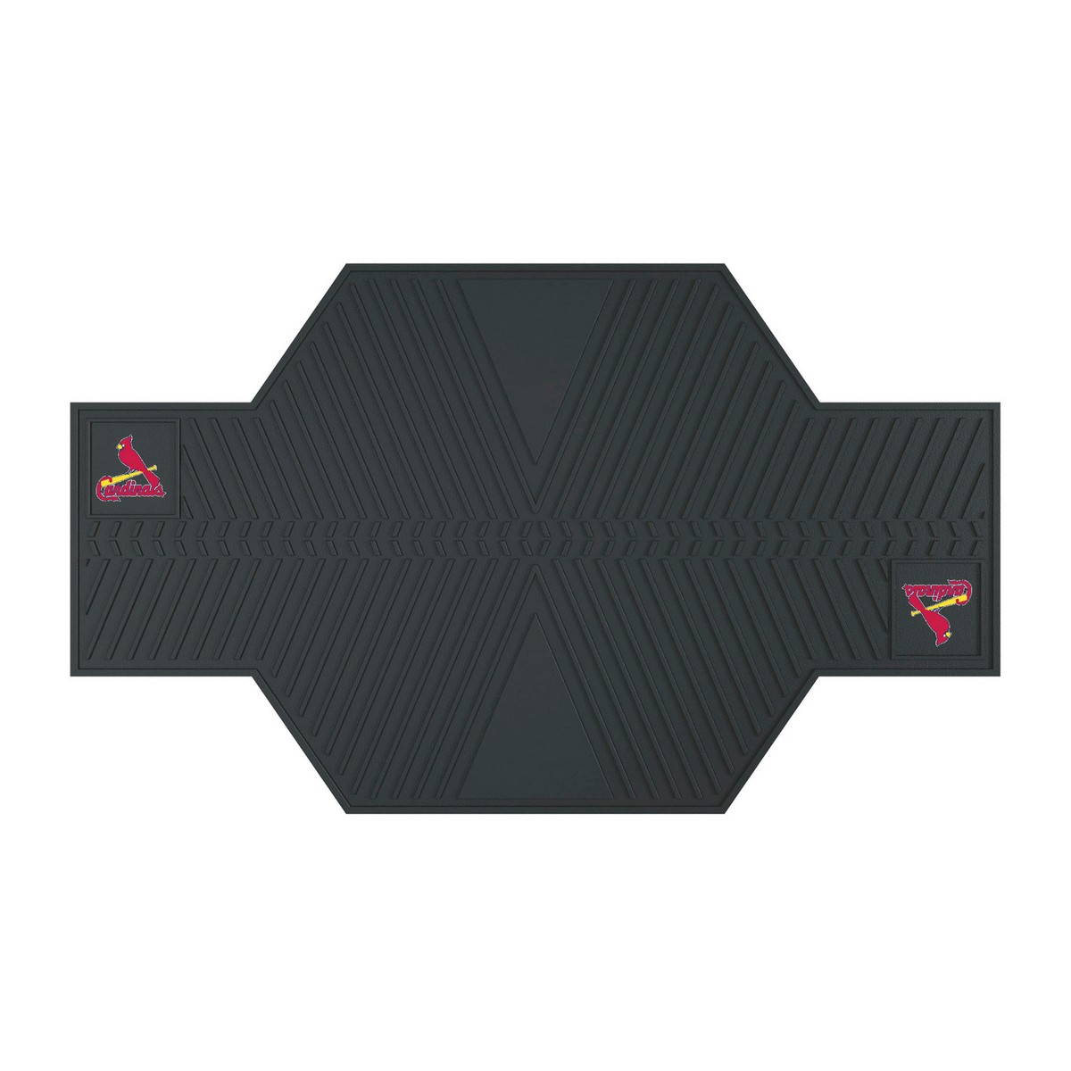 | St. Louis Cardinals Motorcycle Mat Oil resistant Grip-style backing keeps mat in place Designed to catch dirt, debris, and even oil 5/16" thickness Features two 3D molded team logos Easily cleaned with a water hose MLB - St. Louis Cardinals in Missouri MLB Major League Baseball |