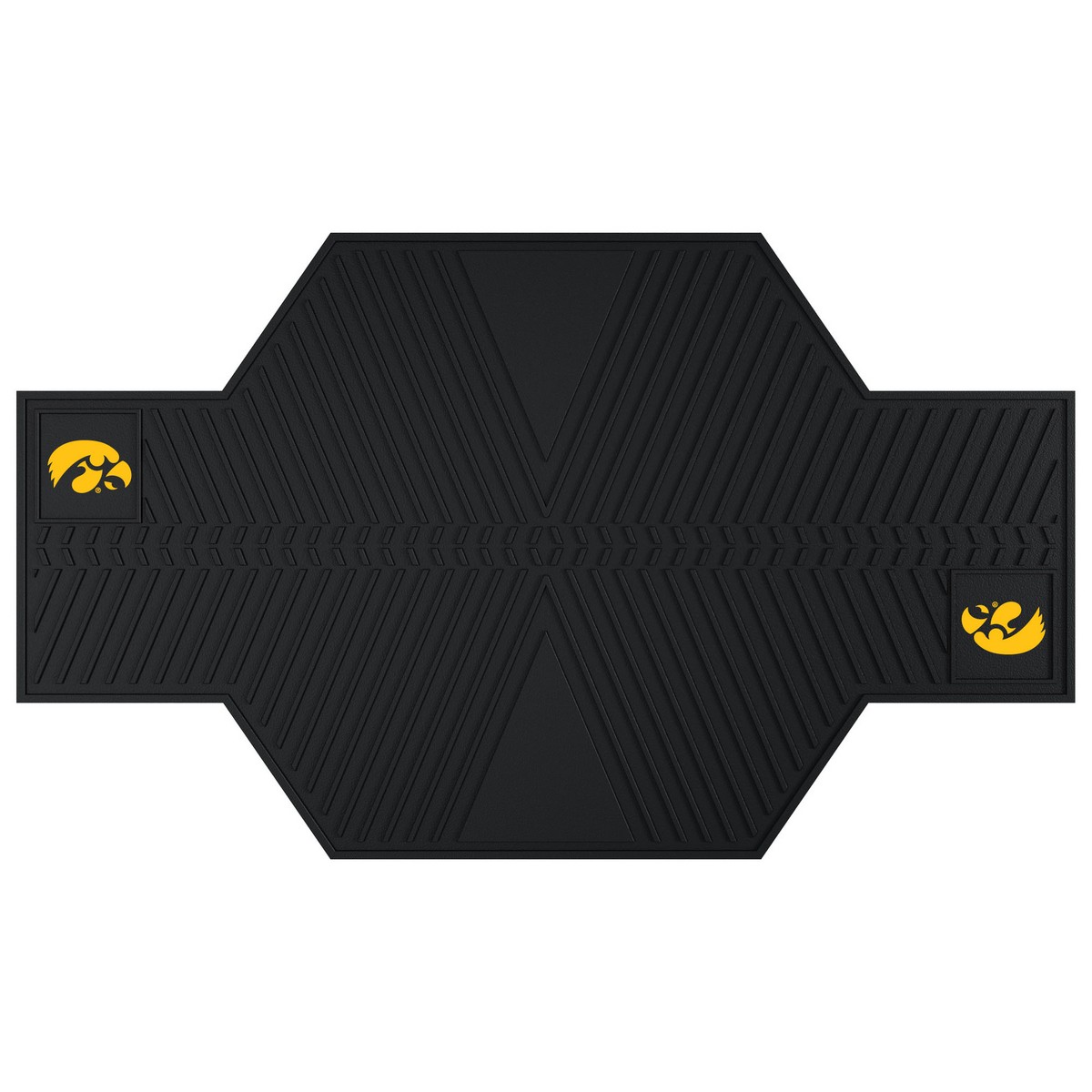 | Iowa Hawkeyes Motorcycle Mat Oil resistant Grip-style backing keeps mat in place Designed to catch dirt, debris, and even oil 5/16" thickness Features two 3D molded team logos Easily cleaned with a water hose University of Iowa in Iowa |