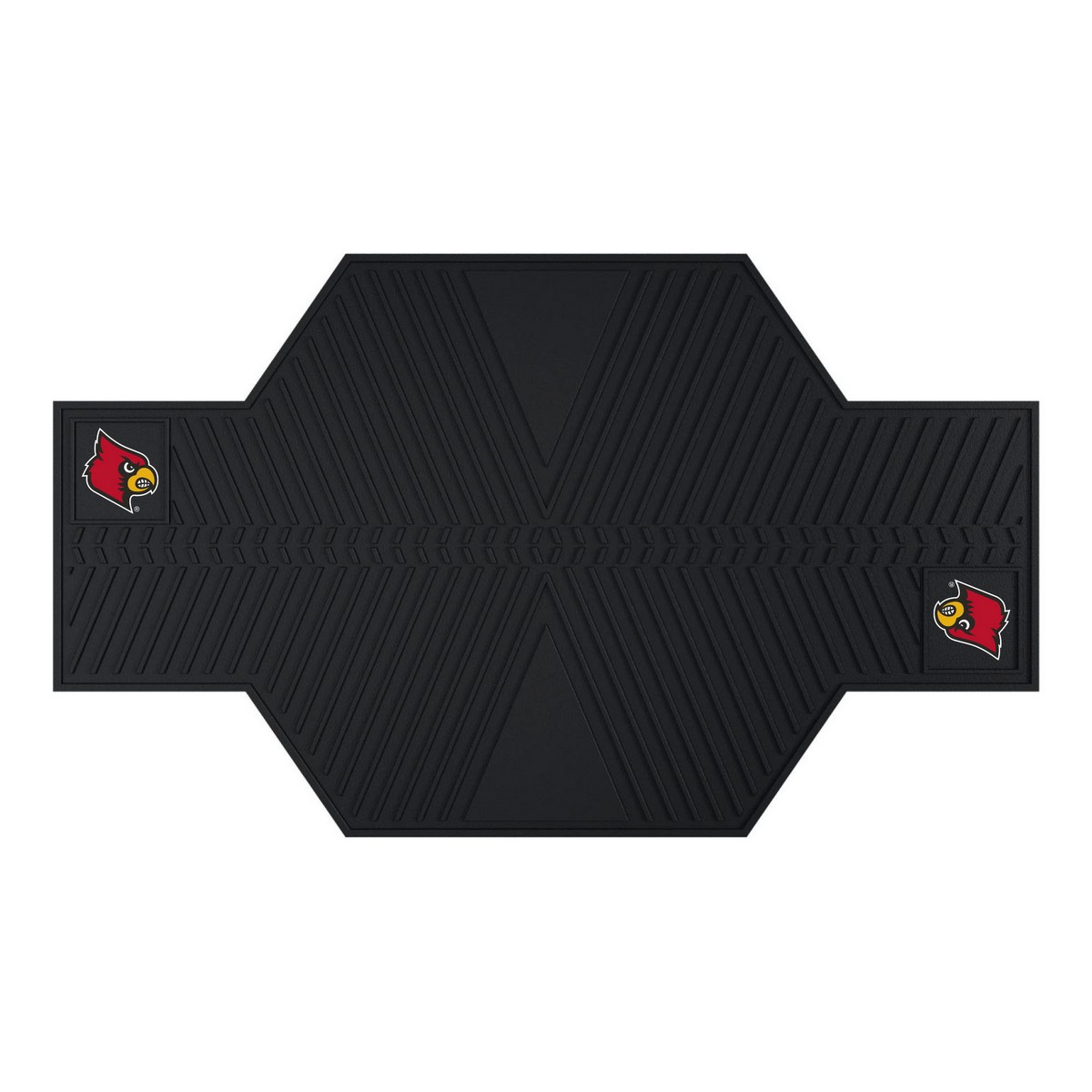 | Louisville Cardinals Motorcycle Mat Oil resistant Grip-style backing keeps mat in place Designed to catch dirt, debris, and even oil 5/16" thickness Features two 3D molded team logos Easily cleaned with a water hose University of Louisville in Kentucky |