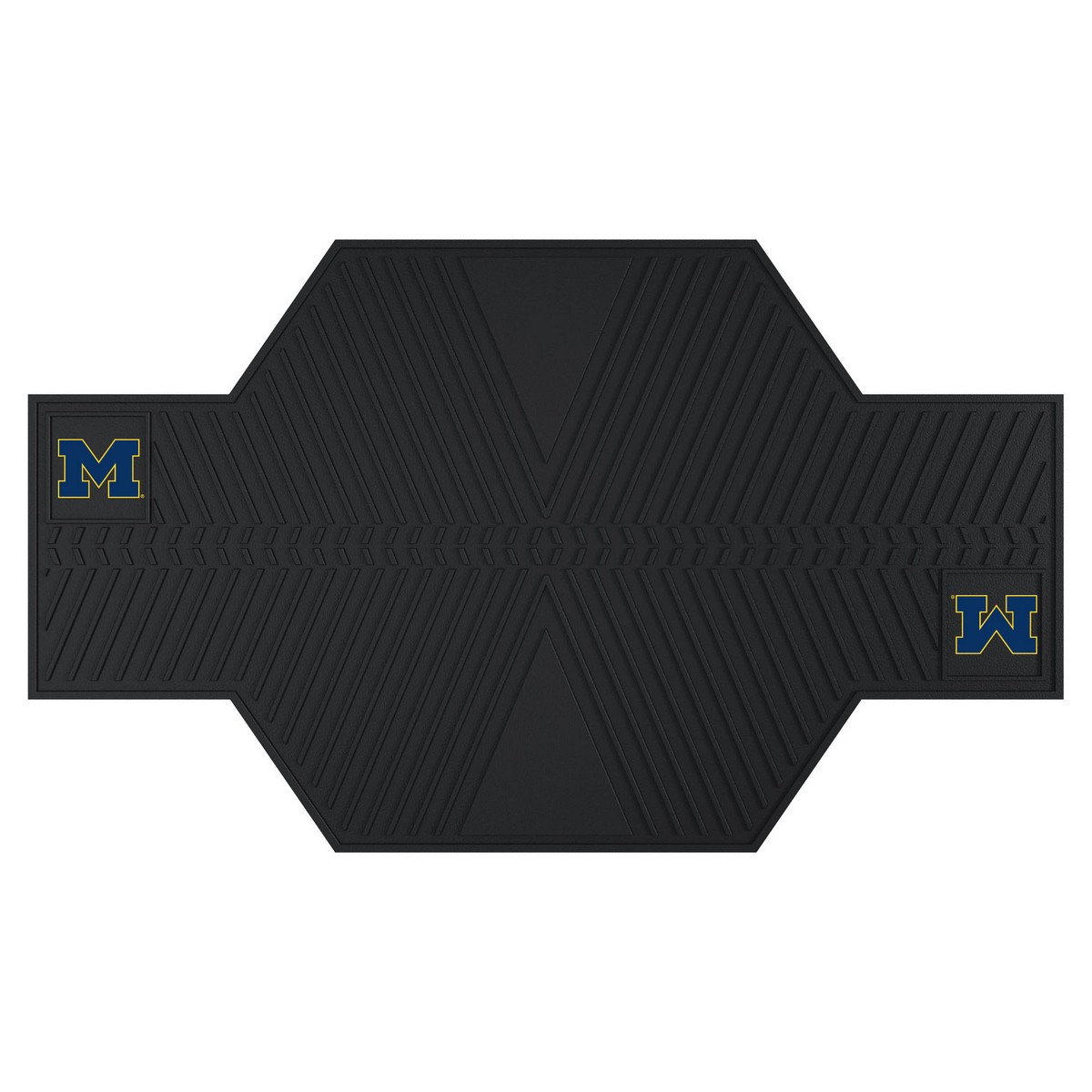 | Michigan Wolverines Motorcycle Mat Oil resistant Grip-style backing keeps mat in place Designed to catch dirt, debris, and even oil 5/16" thickness Features two 3D molded team logos Easily cleaned with a water hose University of Michigan in Michigan |