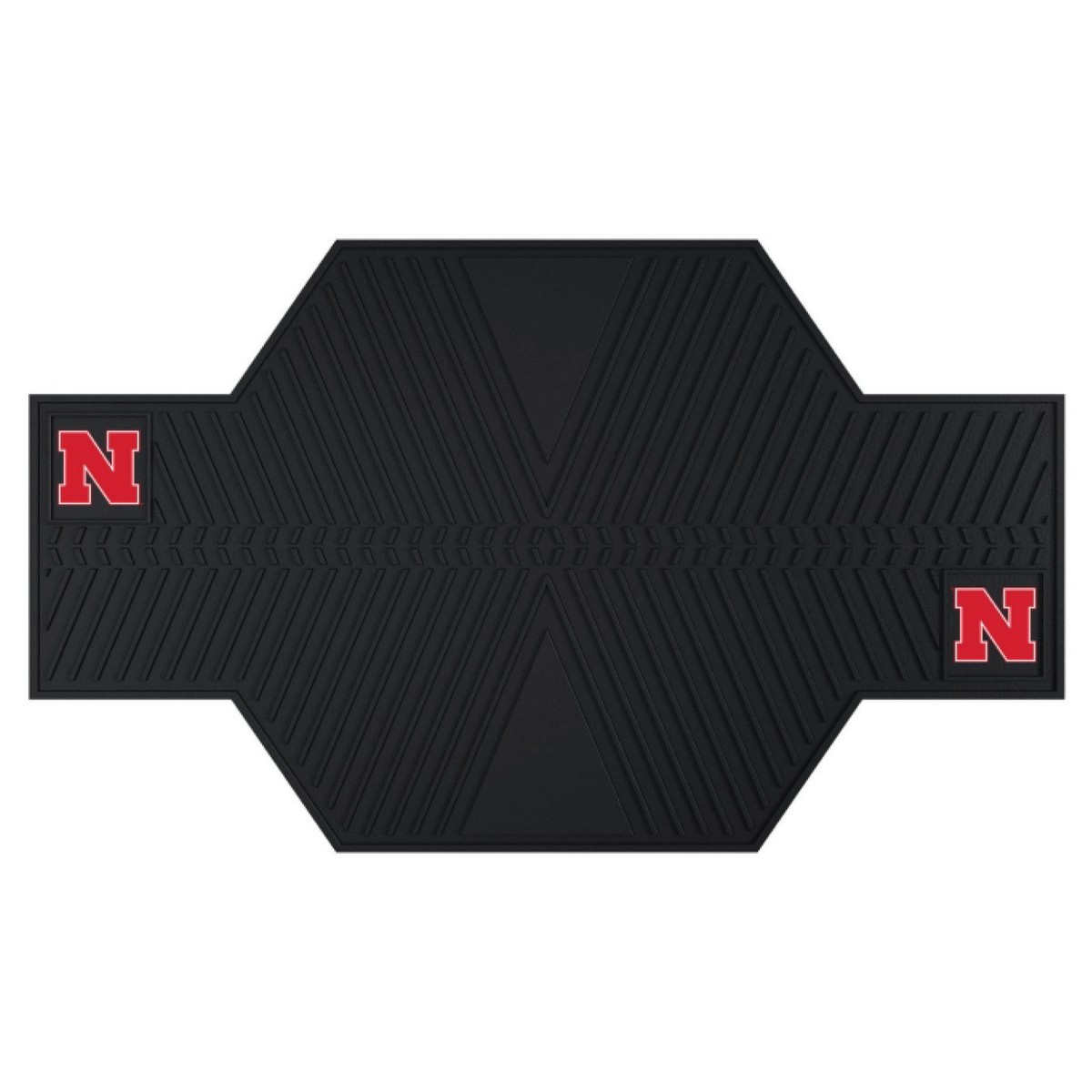 | Nebraska Cornhuskers Motorcycle Mat Oil resistant Grip-style backing keeps mat in place Designed to catch dirt, debris, and even oil 5/16" thickness Features two 3D molded team logos Easily cleaned with a water hose University of Nebraska in Nebraska |