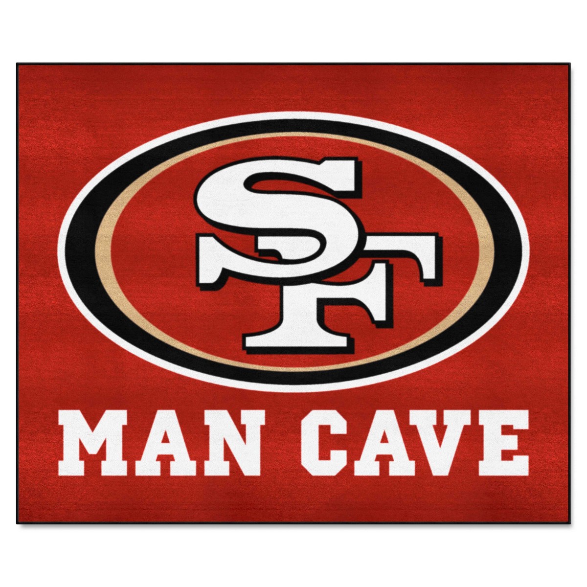 | San Francisco 49ers Man Cave Tailgater Rug - 5ft. x 6ft. 9 Ounce, 100 % Nylon Face Recycled vinyl backing for a durable and longer-lasting product Machine made and tufted in the USA Non-skid backing with serged borders for added durability Machine washable; vacuum regularly and spot clean for any easy and quick clean Officially licensed and chromojet-printed in true team colors for vibrant, lasting color NFL - San Francisco 49ers in California NFL National Football League |