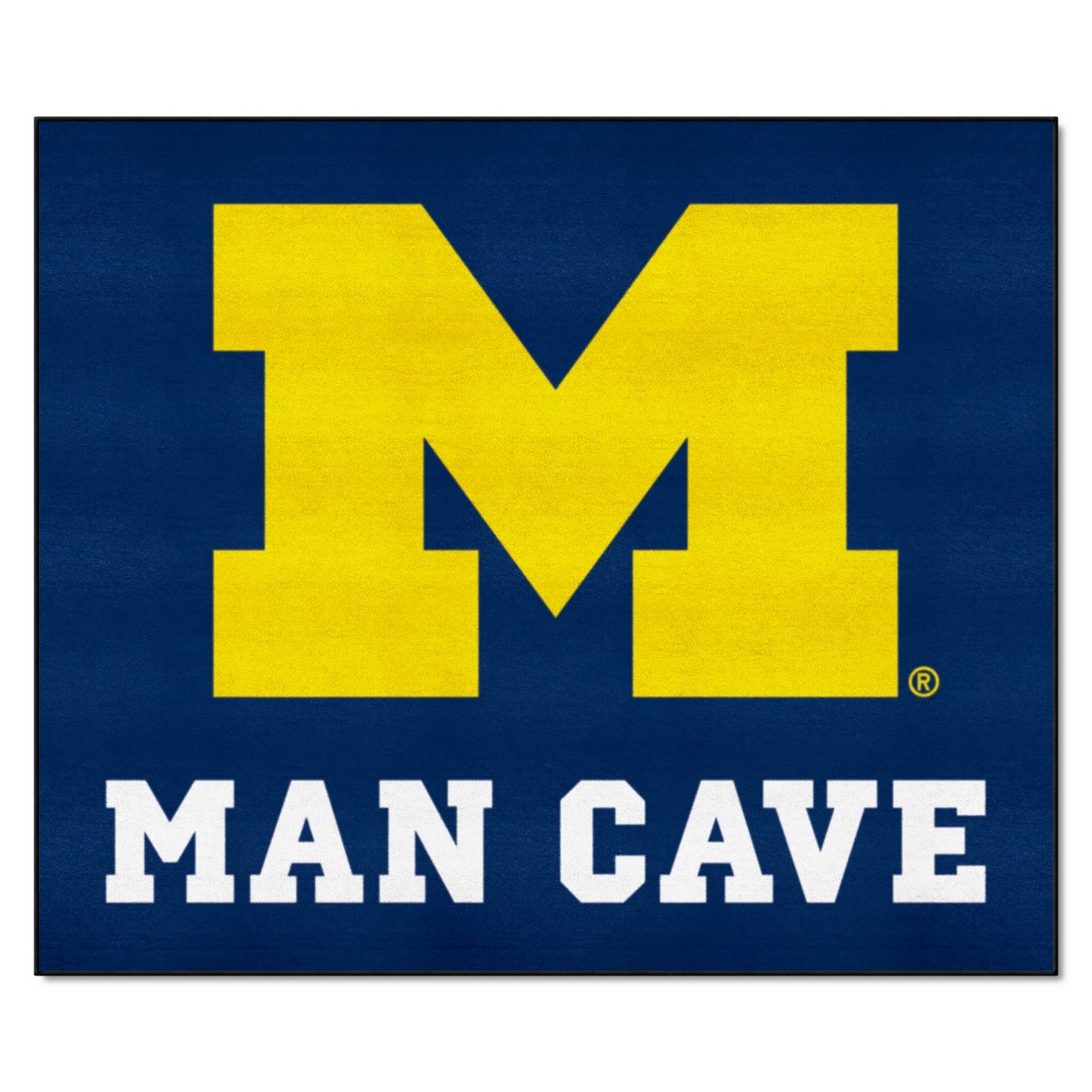 | Michigan Wolverines Man Cave Tailgater Rug - 5ft. x 6ft. 9 Ounce, 100 % Nylon Face Recycled vinyl backing for a durable and longer-lasting product Machine made and tufted in the USA Non-skid backing with serged borders for added durability Machine washable; vacuum regularly and spot clean for any easy and quick clean Officially licensed and chromojet-printed in true team colors for vibrant, lasting color University of Michigan in Michigan |