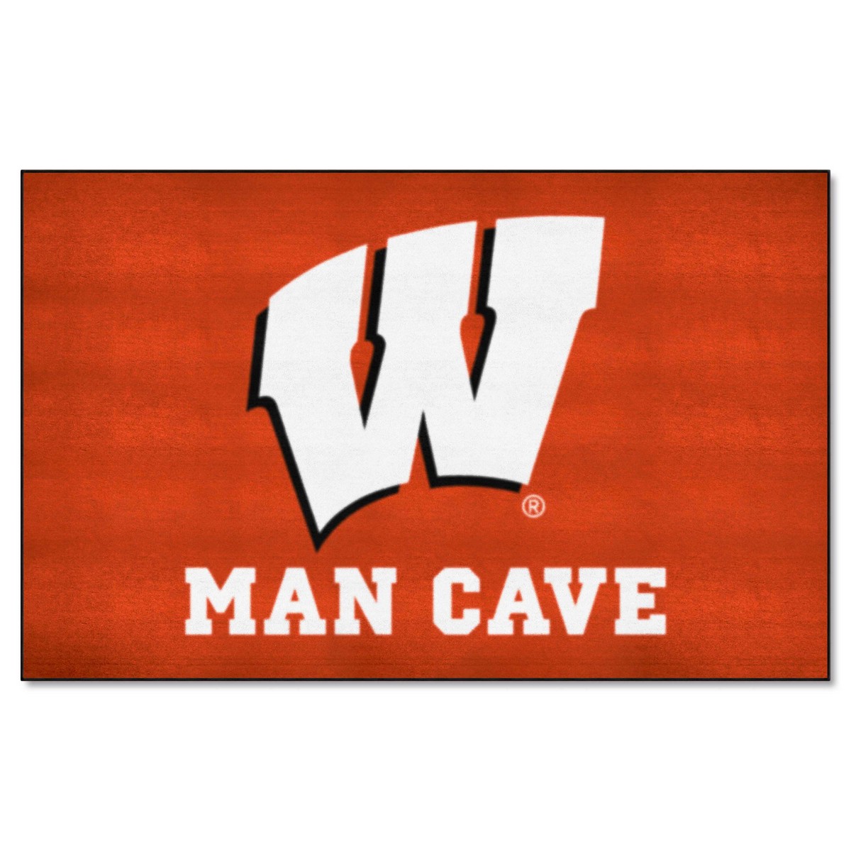 | Wisconsin Badgers Man Cave Ulti-Mat Rug - 5ft. x 8ft. 9 Ounce, 100 % Nylon Face Recycled vinyl backing for a durable and longer-lasting product Machine made and tufted in the USA Non-skid backing with serged borders for added durability Machine washable; vacuum regularly and spot clean for any easy and quick clean Officially licensed and chromojet-printed in true team colors for vibrant, lasting color University of Wisconsin in Wisconsin |