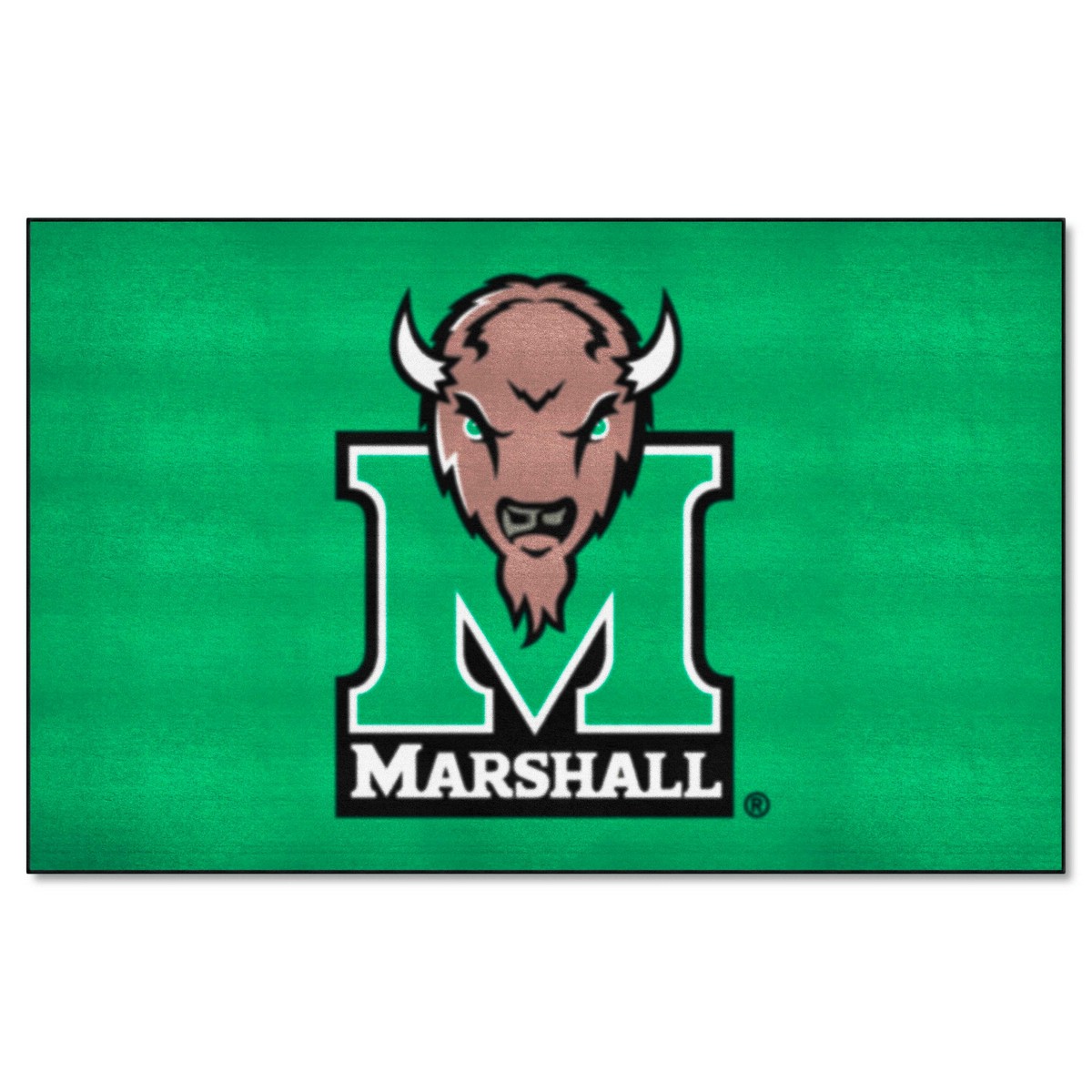 | Marshall Thundering Herd Ulti-Mat Rug - 5ft. x 8ft. 9 Ounce, 100 % Nylon Face Recycled vinyl backing for a durable and longer-lasting product Machine made and tufted in the USA Non-skid backing with serged borders for added durability Machine washable; vacuum regularly and spot clean for any easy and quick clean Officially licensed and chromojet-printed in true team colors for vibrant, lasting color Marshall University in West Virginia |