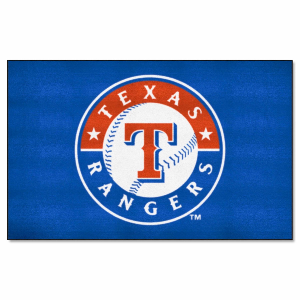 | Texas Rangers Ulti-Mat Rug - 5ft. x 8ft. 9 Ounce, 100 % Nylon Face Recycled vinyl backing for a durable and longer-lasting product Machine made and tufted in the USA Non-skid backing with serged borders for added durability Machine washable; vacuum regularly and spot clean for any easy and quick clean Officially licensed and chromojet-printed in true team colors for vibrant, lasting color MLB - Texas Rangers in Texas MLB Major League Baseball |