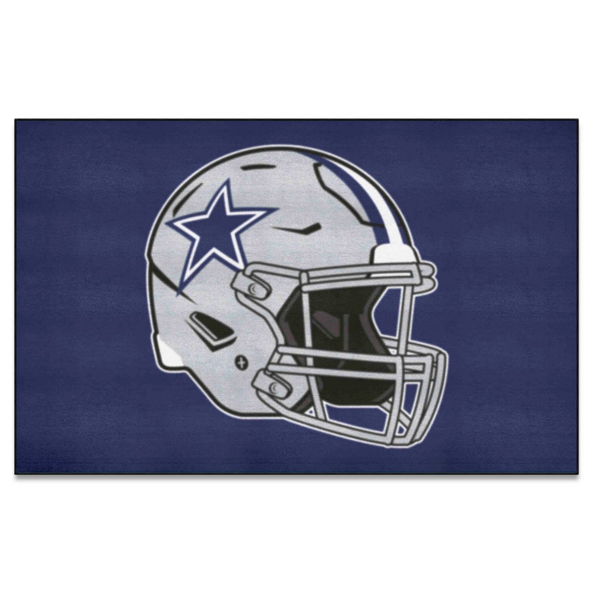 | Dallas Cowboys Ulti-Mat Rug - 5ft. x 8ft., Helmet Logo 9 Ounce, 100 % Nylon Face Recycled vinyl backing for a durable and longer-lasting product Machine made and tufted in the USA Non-skid backing with serged borders for added durability Machine washable; vacuum regularly and spot clean for any easy and quick clean Officially licensed and chromojet-printed in true team colors for vibrant, lasting color NFL - Dallas Cowboys in Texas NFL National Football League |