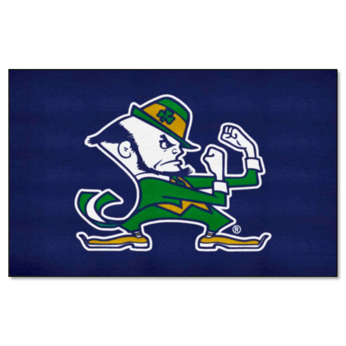 | Notre Dame Fighting Irish Ulti-Mat Rug - 5ft. x 8ft., Leprechaun 9 Ounce, 100 % Nylon Face Recycled vinyl backing for a durable and longer-lasting product Machine made and tufted in the USA Non-skid backing with serged borders for added durability Machine washable; vacuum regularly and spot clean for any easy and quick clean Officially licensed and chromojet-printed in true team colors for vibrant, lasting color Notre Dame in Indiana |