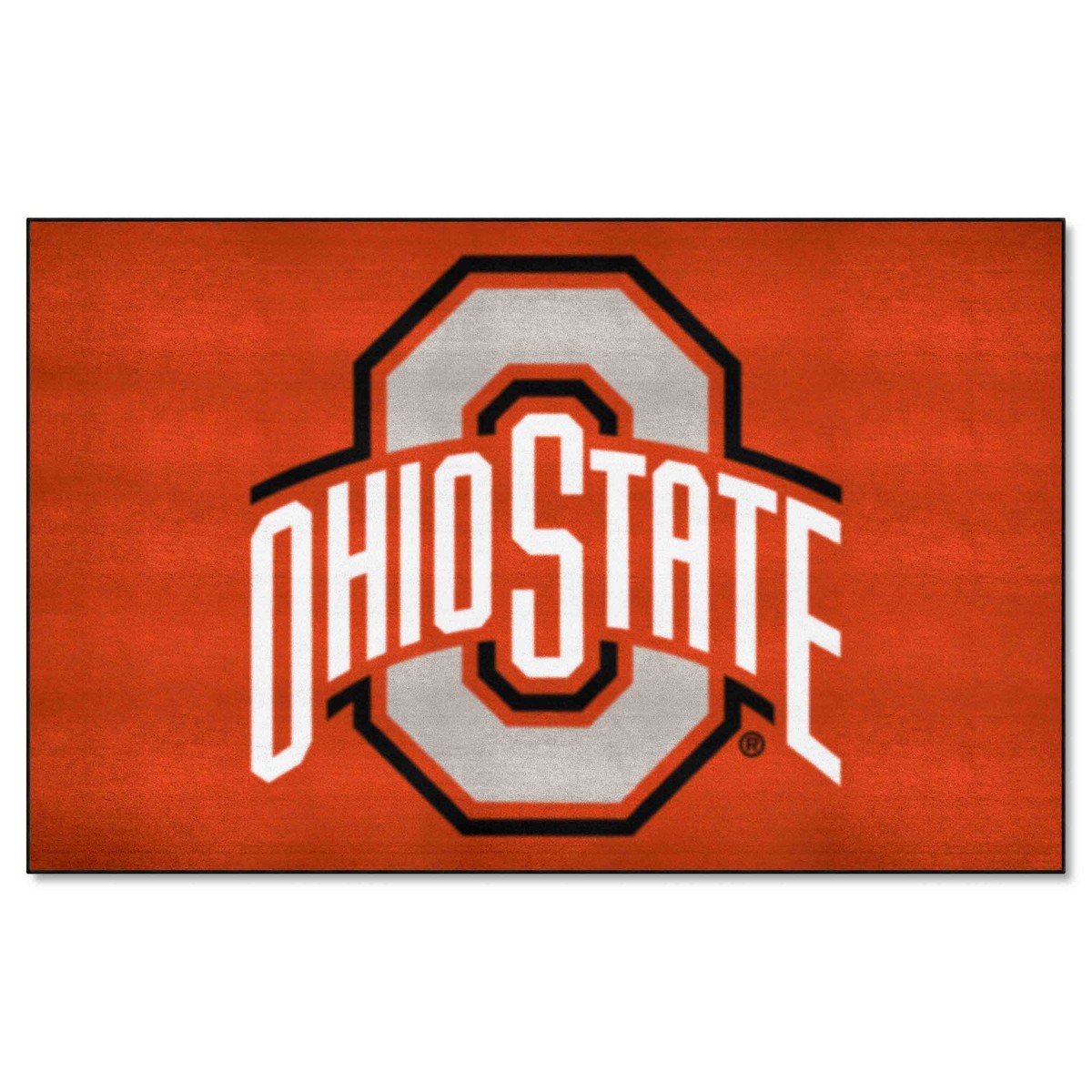 | Ohio State Buckeyes Ulti-Mat Rug - 5ft. x 8ft. 9 Ounce, 100 % Nylon Face Recycled vinyl backing for a durable and longer-lasting product Machine made and tufted in the USA Non-skid backing with serged borders for added durability Machine washable; vacuum regularly and spot clean for any easy and quick clean Officially licensed and chromojet-printed in true team colors for vibrant, lasting color Ohio State University in Ohio |