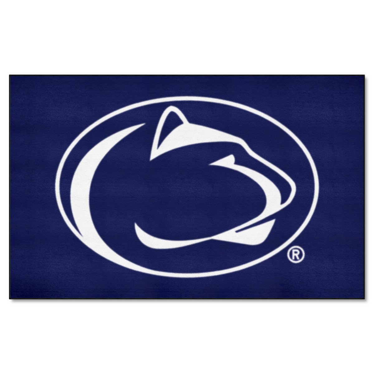 | Penn State Nittany Lions Ulti-Mat Rug - 5ft. x 8ft. 9 Ounce, 100 % Nylon Face Recycled vinyl backing for a durable and longer-lasting product Machine made and tufted in the USA Non-skid backing with serged borders for added durability Machine washable; vacuum regularly and spot clean for any easy and quick clean Officially licensed and chromojet-printed in true team colors for vibrant, lasting color Pennsylvania State University in Pennsylvania |