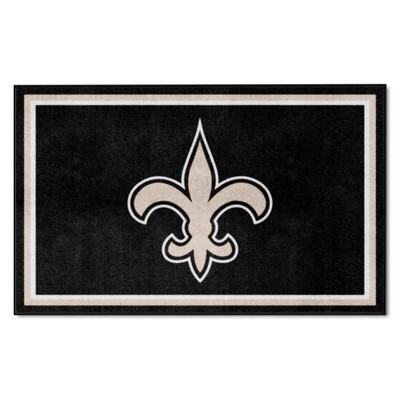 | New Orleans Saints 4ft. x 6ft. Plush Area Rug 23.5 oz., 100% Nylon Face Latex backing for a durable and longer-lasting product Machine made in the USA Non-skid backing to ensure stability Vacuum regularly and spot clean Chromojet-printed in true team colors NFL - New Orleans Saints in Louisiana NFL National Football League |