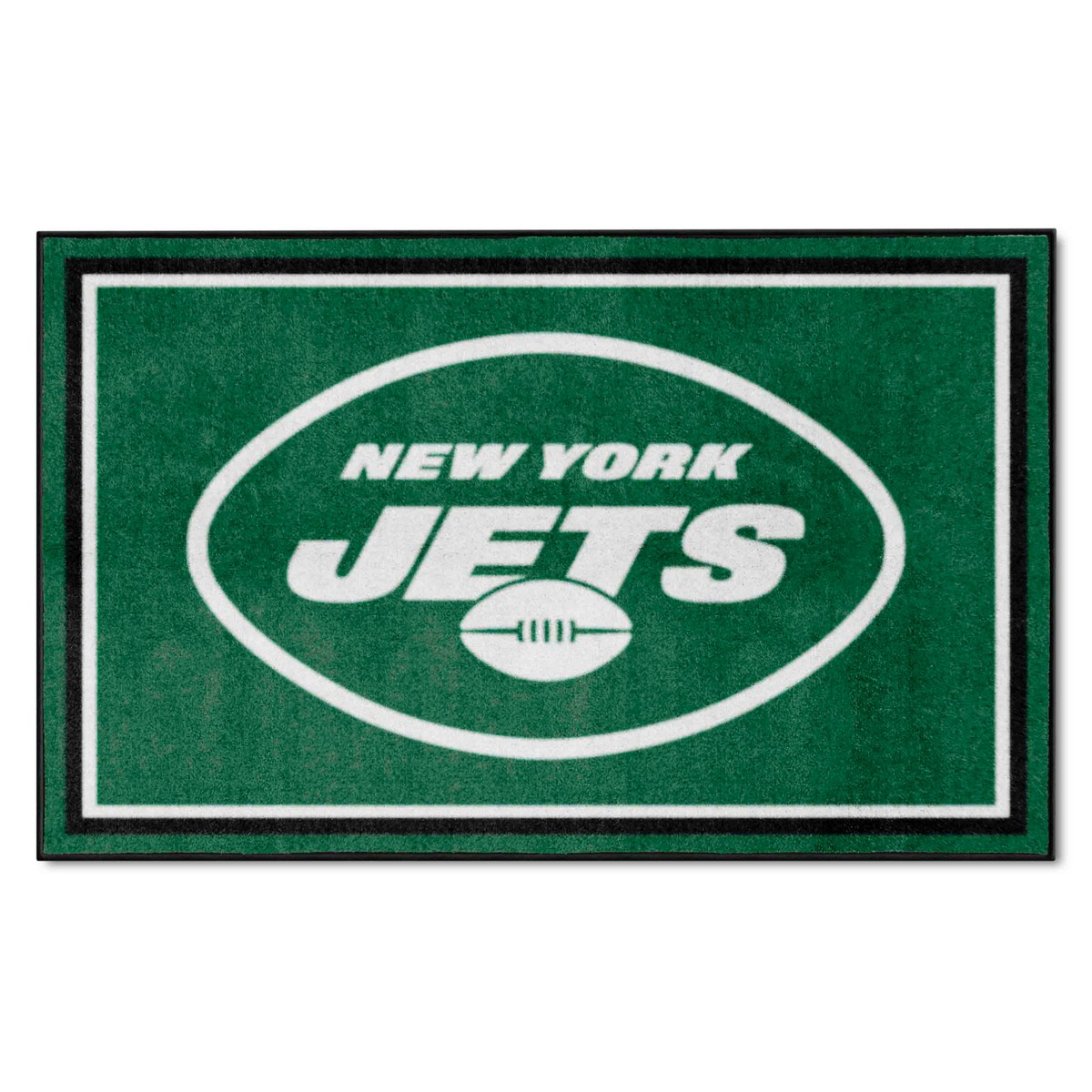 | New York Jets 4ft. x 6ft. Plush Area Rug 23.5 oz., 100% Nylon Face Latex backing for a durable and longer-lasting product Machine made in the USA Non-skid backing to ensure stability Vacuum regularly and spot clean Chromojet-printed in true team colors NFL - New York Jets in New Jersey NFL National Football League |