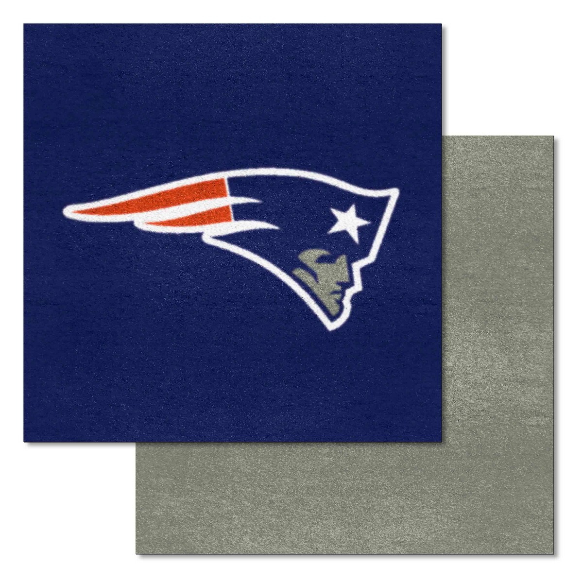 | New England Patriots Team Carpet Tiles - 45 Sq Ft. Easy to install, adhesive strips included No padding or underlay required 10 team and 10 accent color tiles Smooth recycled backing 9 Ounce, 100 % Nylon Face Covers 45 square feet when assembled NFL - New England Patriots in Massachusetts NFL National Football League |