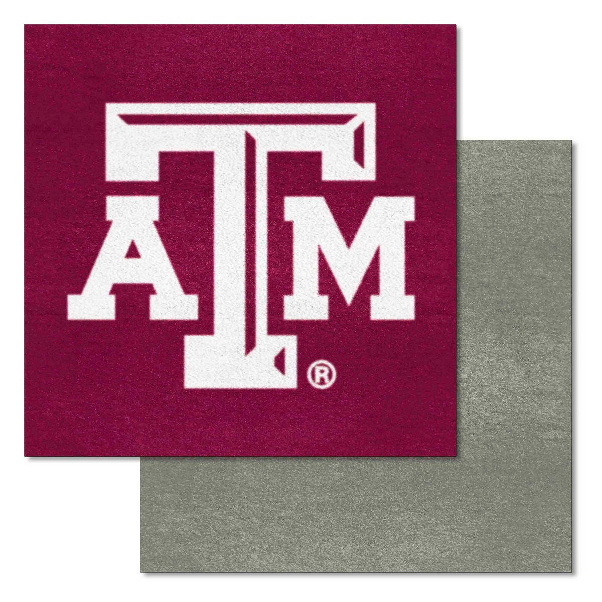 | Texas A&M Aggies Team Carpet Tiles - 45 Sq Ft. Easy to install, adhesive strips included No padding or underlay required 10 team and 10 accent color tiles Smooth recycled backing 9 Ounce, 100 % Nylon Face Covers 45 square feet when assembled Texas A&M University in Texas |