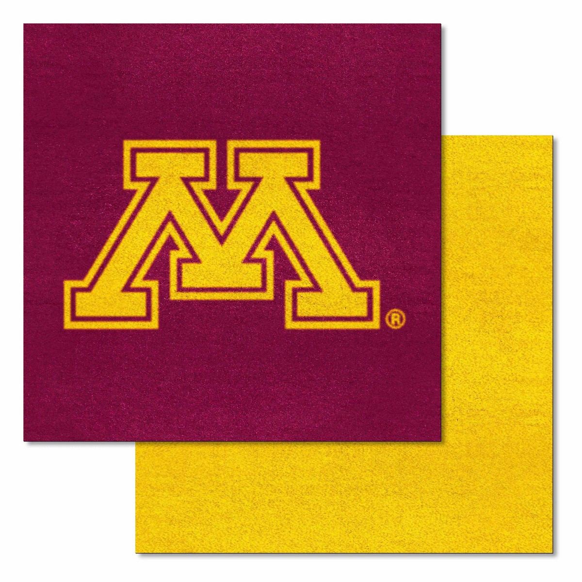 | Minnesota Golden Gophers Team Carpet Tiles - 45 Sq Ft. Easy to install, adhesive strips included No padding or underlay required 10 team and 10 accent color tiles Smooth recycled backing 9 Ounce, 100 % Nylon Face Covers 45 square feet when assembled University of Minnesota in Minnesota |