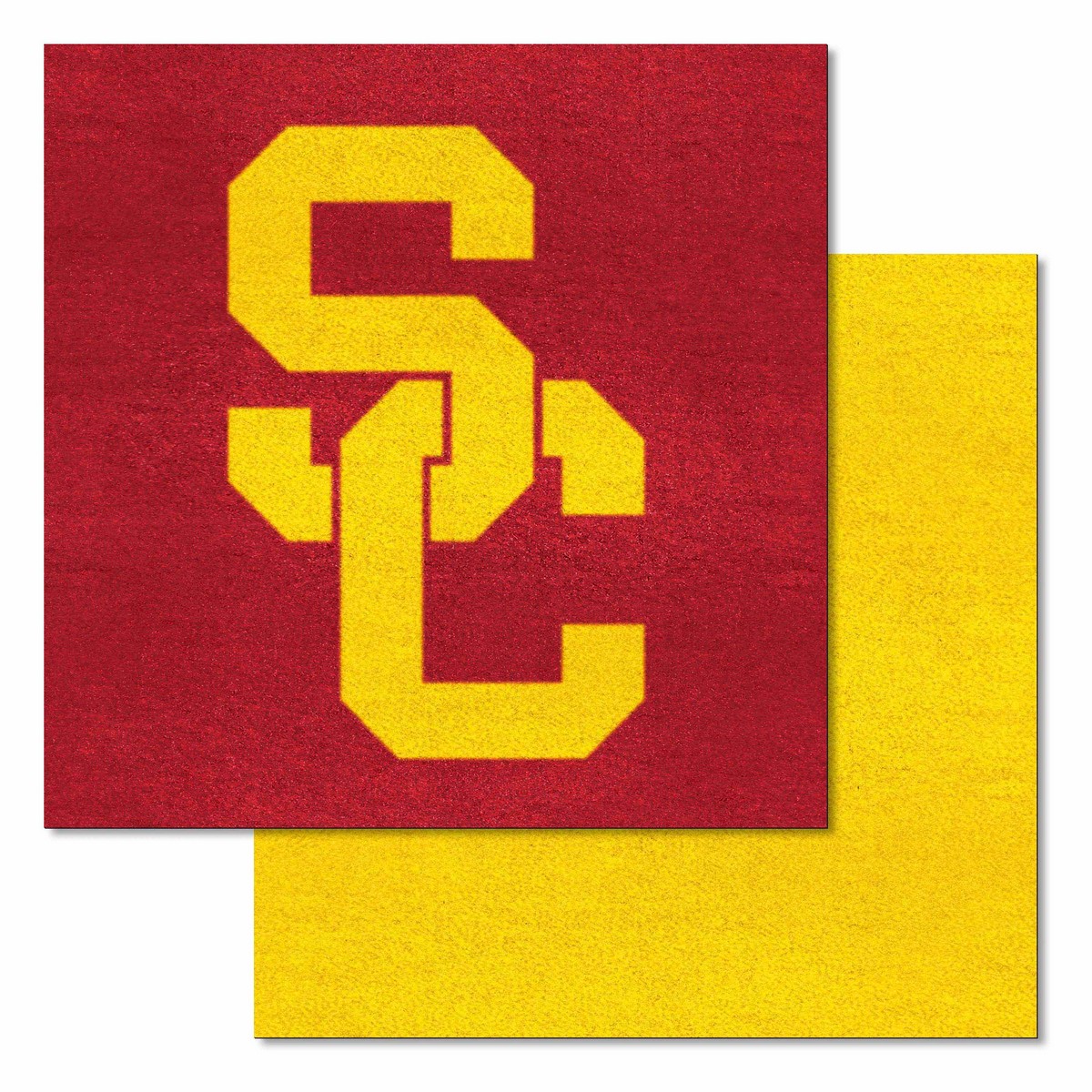 | Southern California Trojans Team Carpet Tiles - 45 Sq Ft. Easy to install, adhesive strips included No padding or underlay required 10 team and 10 accent color tiles Smooth recycled backing 9 Ounce, 100 % Nylon Face Covers 45 square feet when assembled University of Southern California in California |
