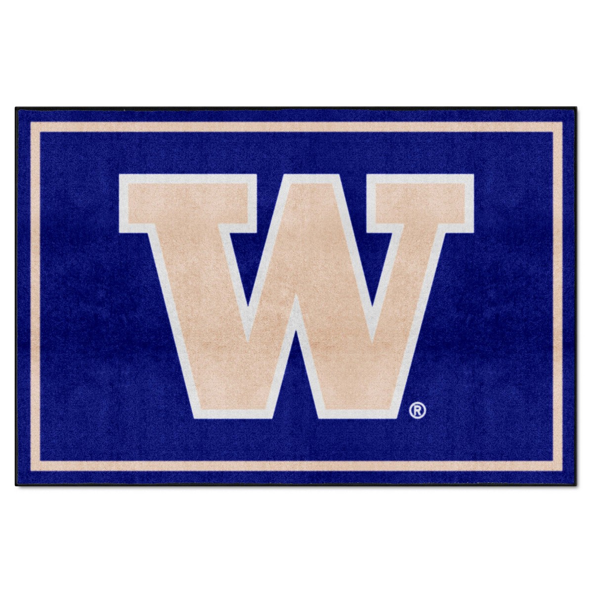 | Washington Huskies 5ft. x 8 ft. Plush Area Rug 23.5 oz., 100% Nylon Face Latex backing for a durable and longer-lasting product Machine made in the USA Non-skid backing to ensure stability Vacuum regularly and spot clean Chromojet-printed in true team colors University of Washington in Washington |