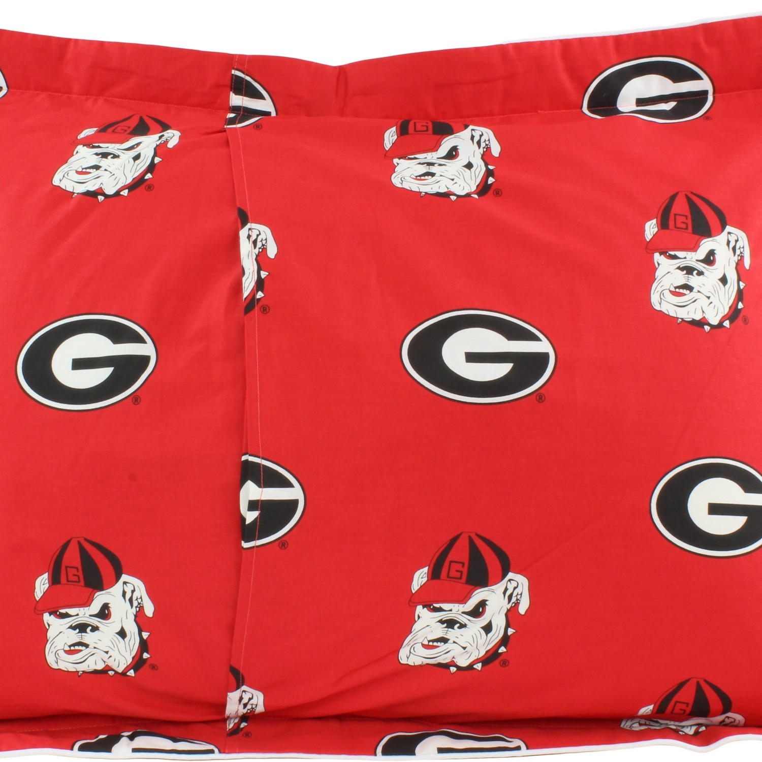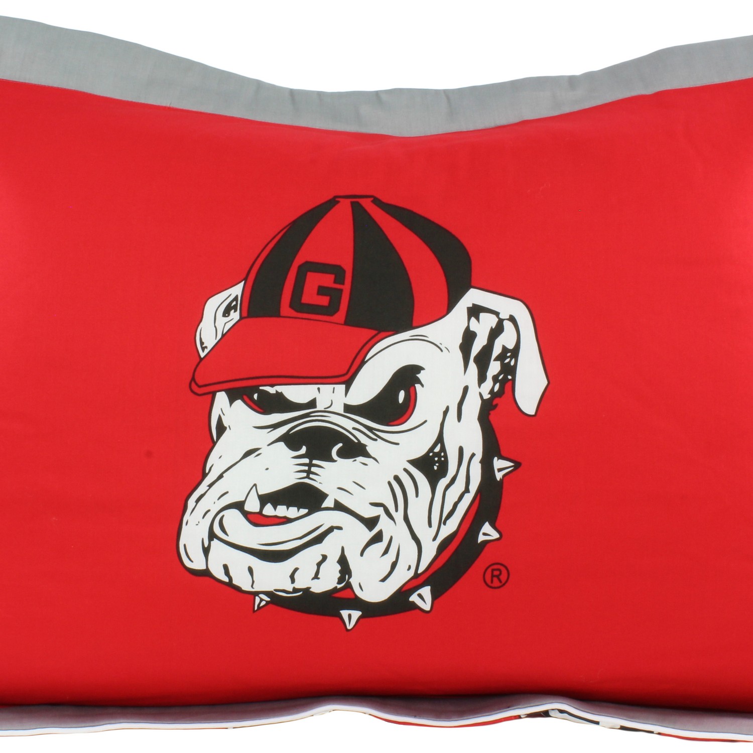 | Georgia Bulldogs Quilted Border Pillow Sham Adds Extra Color and Comfort To Our Pillow Sham Big Logo On The Front, All Over Print On Back For A Reversible Sham Bright and Vibrant Team Colors and Logos on Both Sides Fits a Standard Sized Pillow, Includes 1 Sham Imported Machine Wash Cold; Tumble Dry Low |