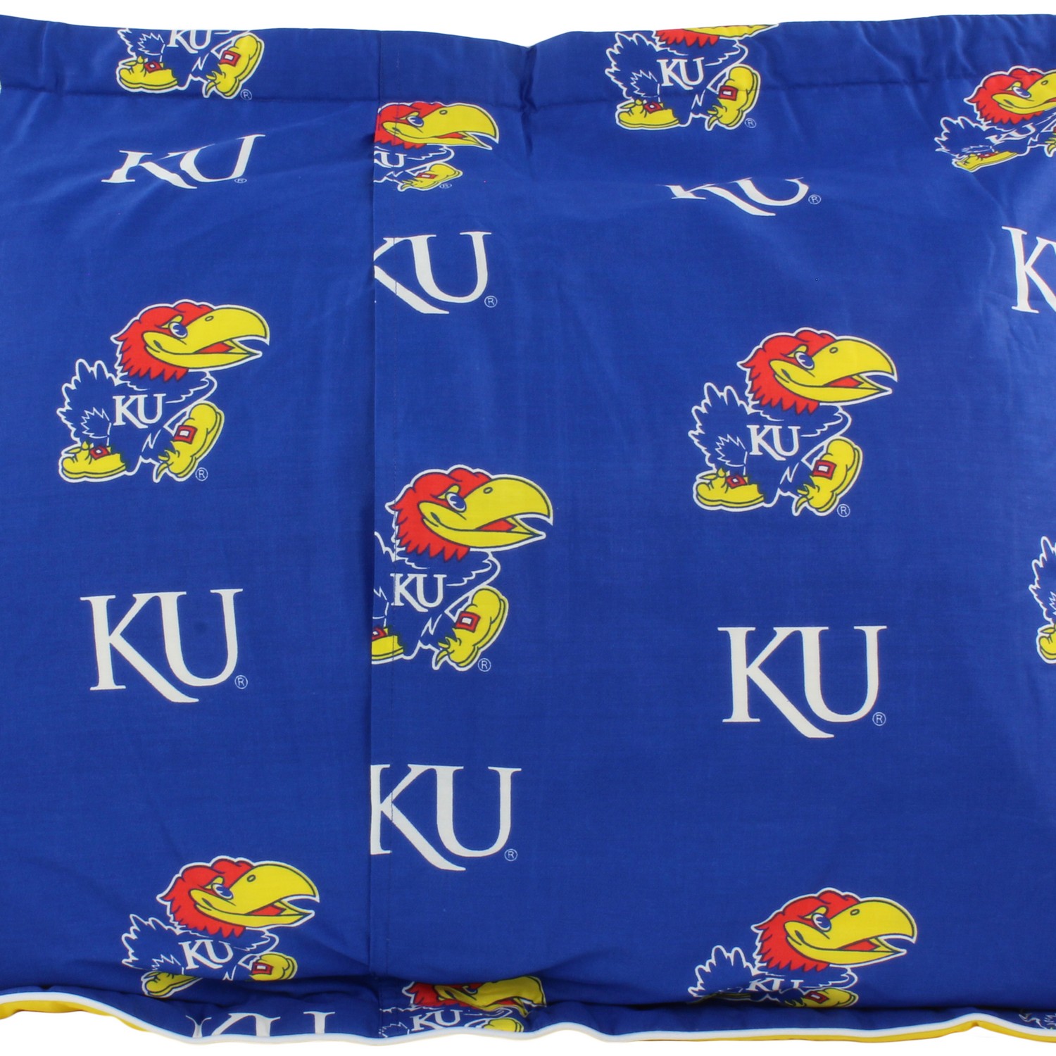 | Kansas Jayhawks Quilted Border Pillow Sham Adds Extra Color and Comfort To Our Pillow Sham Big Logo On The Front, All Over Print On Back For A Reversible Sham Bright and Vibrant Team Colors and Logos on Both Sides Fits a Standard Sized Pillow, Includes 1 Sham Imported Machine Wash Cold; Tumble Dry Low |