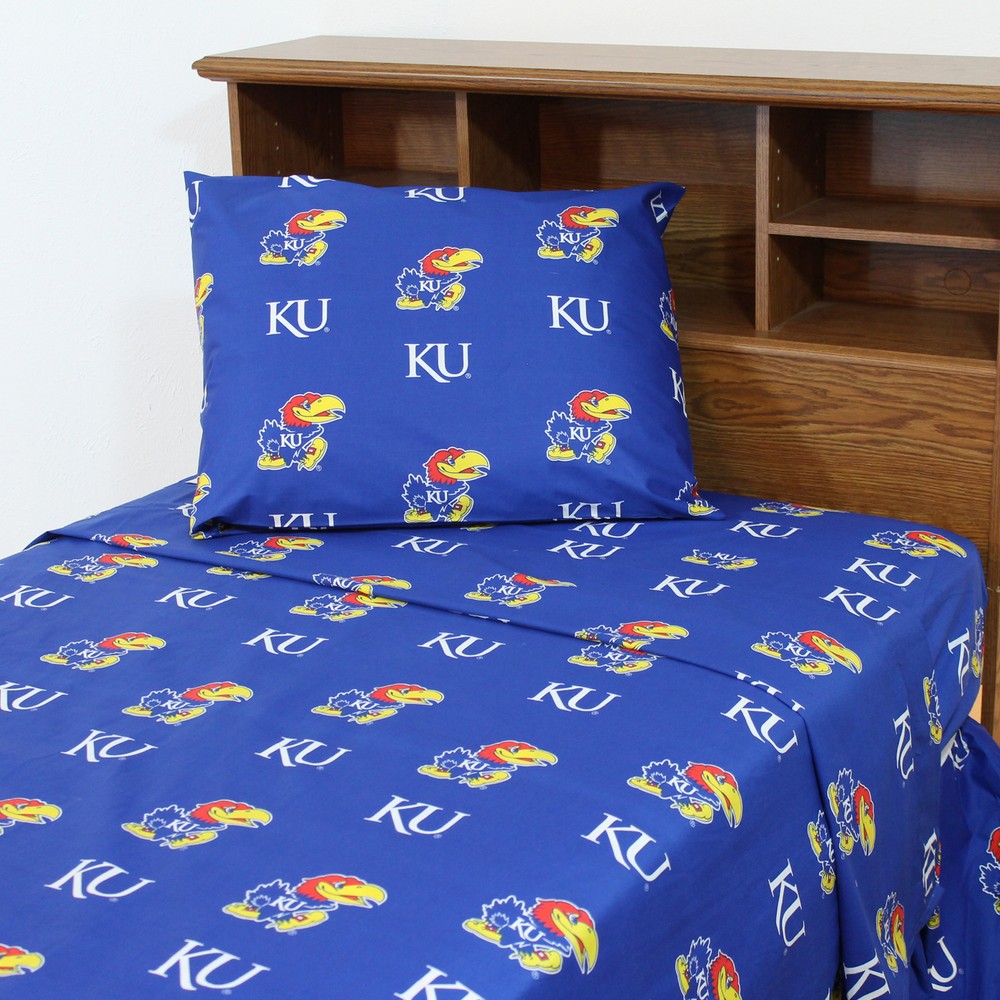Kansas Jayhawks Printed Sheet Set Queen Solid