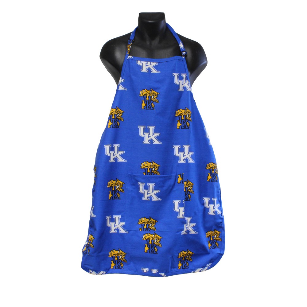 Apron measures 26 inches wide by 35 inches long with pocket in front. Aprons are constructed of 100% cotton duck 200 thread count for a soft yet sturdy feel that will last many washings. Apron is printed with the all over logo print and makes a perfect gift for the baker or griller in your house. Large front pocket