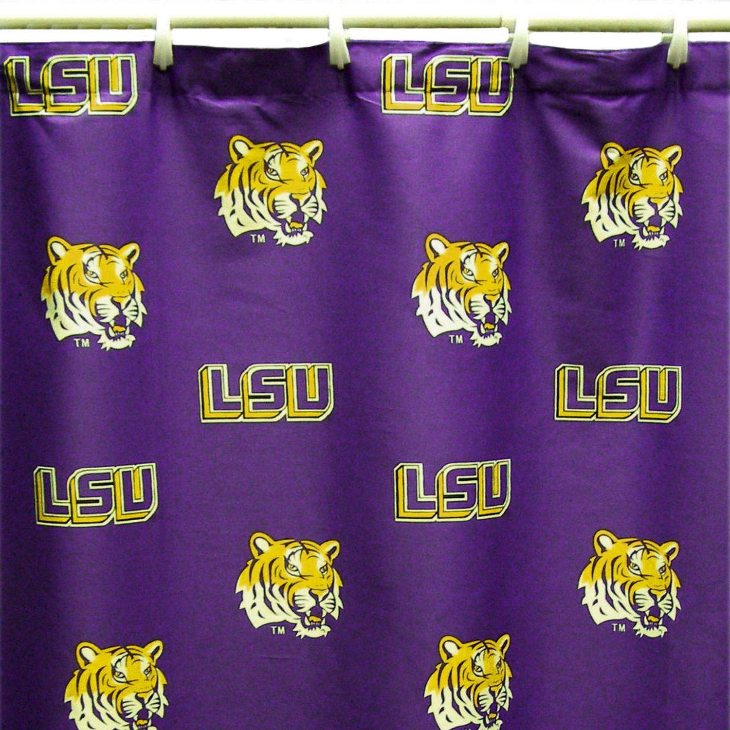 | LSU Tigers Shower Curtain Measures 72 Inches Wide by 70 Inches Long Shower Curtain Does Not Include Plastic Liner Made with 100 Percent Cotton and Is Machine Washable For Easy Cleaning Provides Privacy and Fantastic Color Shower Curtain Has 12 Buttonholes For Shower Curtain Rings (not included) Machine Wash Cold; Tumble Dry Low |