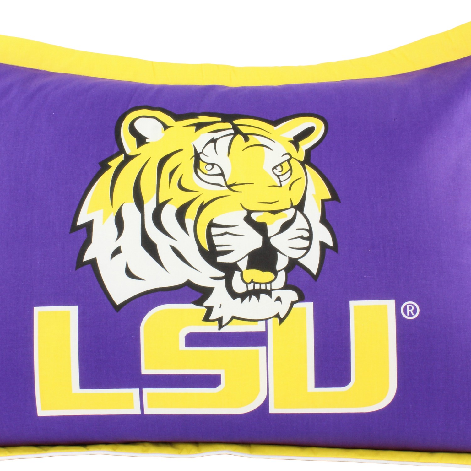 | LSU Tigers Quilted Border Pillow Sham Adds Extra Color and Comfort To Our Pillow Sham Big Logo On The Front, All Over Print On Back For A Reversible Sham Bright and Vibrant Team Colors and Logos on Both Sides Fits a Standard Sized Pillow, Includes 1 Sham Imported Machine Wash Cold; Tumble Dry Low |