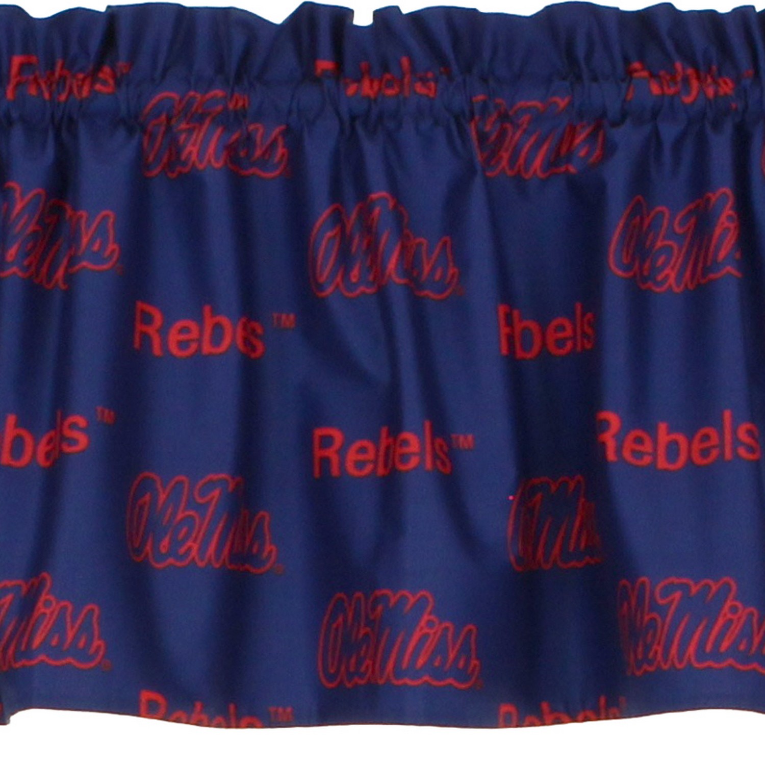 | Ole Miss Rebels Includes 1 curtain valance, 84 x 15-inches 100% Cotton Sateen Officially licensed colors and logos Machine washable cold, tumble dry low heat Matches curtain panels, sold separately Machine Wash Cold; Tumble Dry Low |