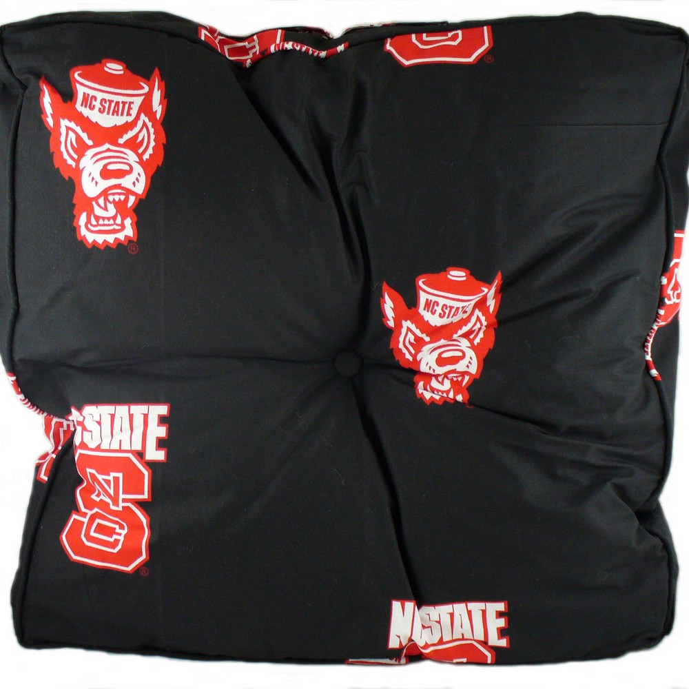 | Floor Pillow is constructed of 100% cotton duck 200 thread count for a soft feel yet great durability. Pillow is printed with the same all over logo pattern to match bedding. Pillow measures 24" X 24" X 4" thick and is a perfect fit for living room, den, or game room. All over pattern. Piped Edge. Team Colors & Logos. College Covers |