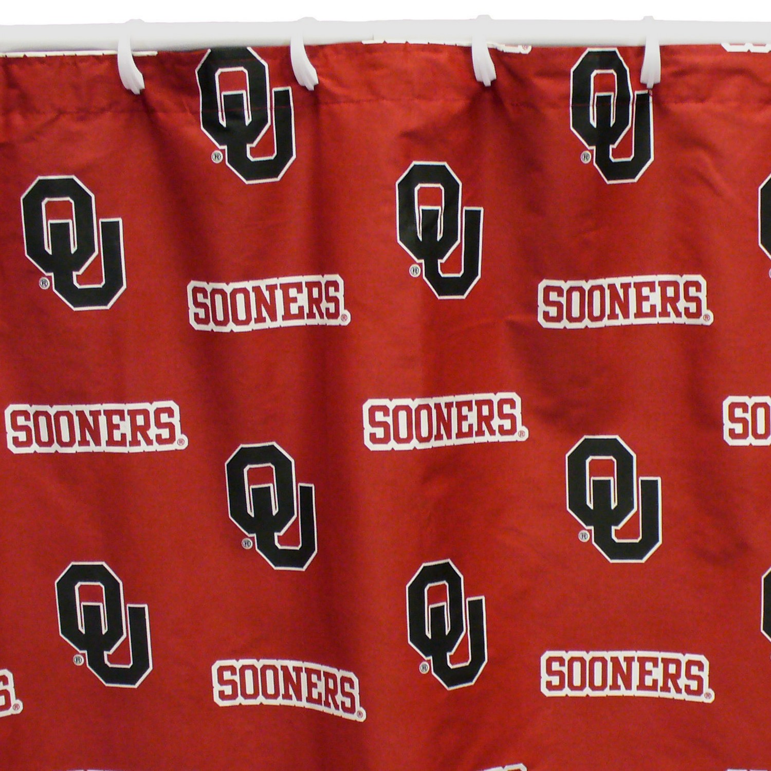 | Oklahoma Sooners Shower Curtain Measures 72 Inches Wide by 70 Inches Long Shower Curtain Does Not Include Plastic Liner Made with 100 Percent Cotton and Is Machine Washable For Easy Cleaning Provides Privacy and Fantastic Color Shower Curtain Has 12 Buttonholes For Shower Curtain Rings (not included) Machine Wash Cold; Tumble Dry Low |