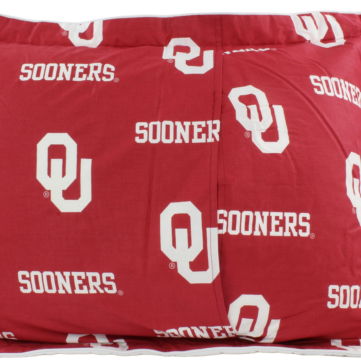 | Oklahoma Sooners Quilted Border Pillow Sham Adds Extra Color and Comfort To Our Pillow Sham Big Logo On The Front, All Over Print On Back For A Reversible Sham Bright and Vibrant Team Colors and Logos on Both Sides Fits a Standard Sized Pillow, Includes 1 Sham Imported Machine Wash Cold; Tumble Dry Low |