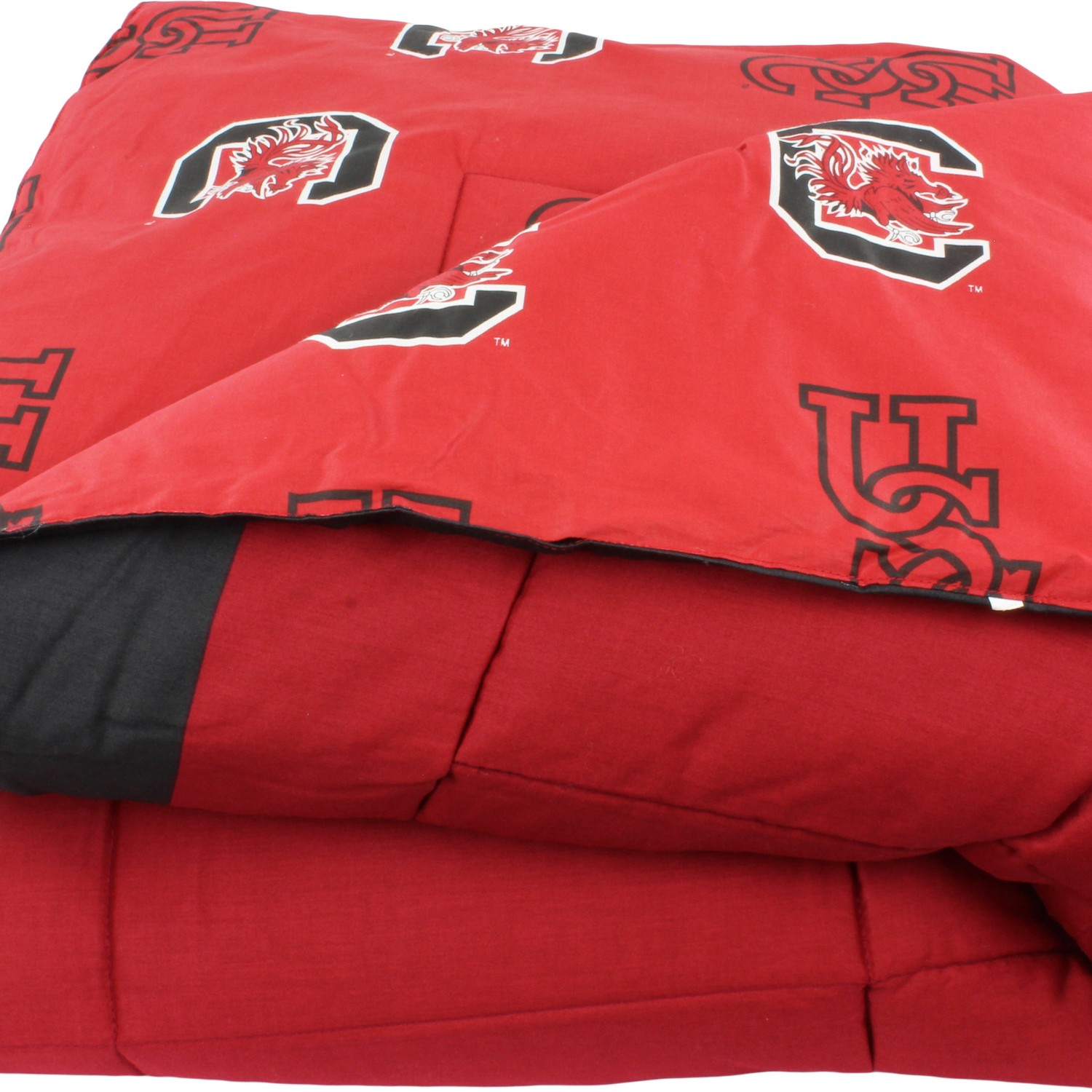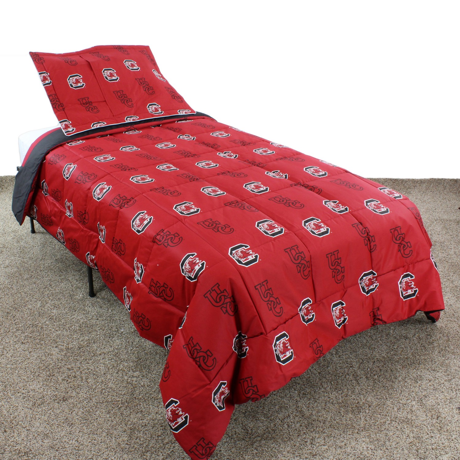 | South Carolina Gamecocks 100% Cotton Sateen, 200 Thread Count. Bright and Vibrant Offically Licensed Colors and Logos Big Logo On The Front Of The Comforter, All Over Print On Back For A Reversible Comforter Comforter Set Includes: 1 Comforter and 2 Pillow Shams Machine Washable In Cold Water, Tumble Dry On Low Heat. Use Commercial Washer and Dryer To Eliminate Chance Of Fabric Rubbing Full Comforter Measures: 80" x 60". Imported Machine Wash Cold; Tumble Dry Low |