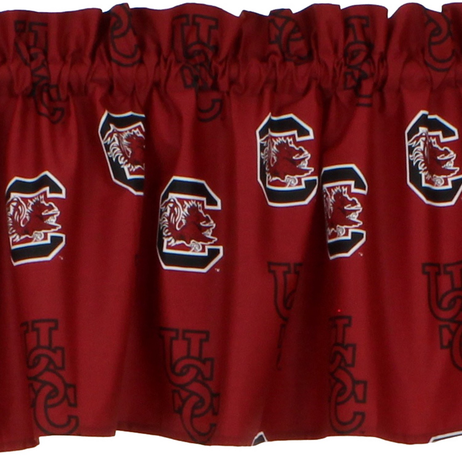 | South Carolina Gamecocks Includes 1 curtain valance, 84 x 15-inches 100% Cotton Sateen Officially licensed colors and logos Machine washable cold, tumble dry low heat Matches curtain panels, sold separately Machine Wash Cold; Tumble Dry Low |