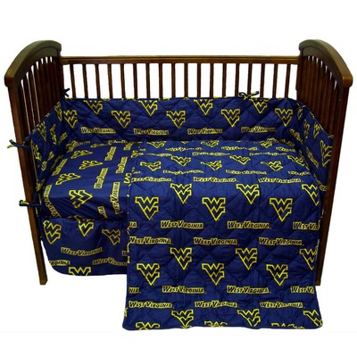 | West Virginia Mountaineers Set includes: Quilted Comforter, 2 Fitted Sheets, Bumper Pad and a Dust Ruffle 100% Cotton Sateen, 200 Thread Count. Bright and Vibrant Officially Licensed Colors and Logos Fits Most Standard Size Crib Mattresses, Up to 6 Inches Machine Washable In Cold Water, Tumble Dry On Low Heat. Imported Machine Wash Cold; Tumble Dry Low |