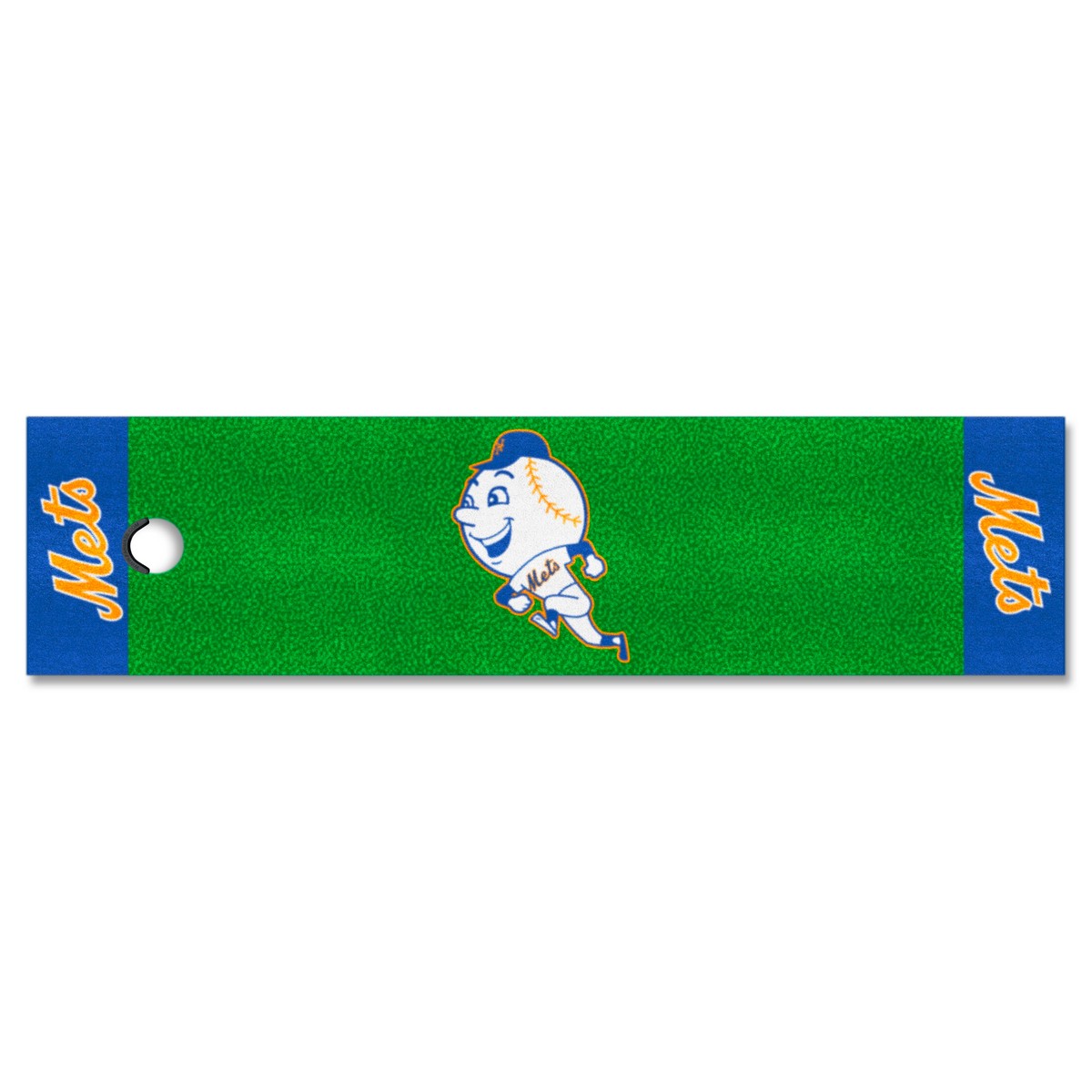 | New York Mets Putting Green Mat - 1.5ft. x 6ft.2014 Realistic putting surface (11* on golf Stimpmeter) Includes putting target barrier/backstop Durable vinyl backing keeps mat in place 100% Nylon Face Doubles as a runner when not in use Officially licensed and chromojet printed in true team colors MLBCC - New York Mets in New York MLB Major League Baseball |