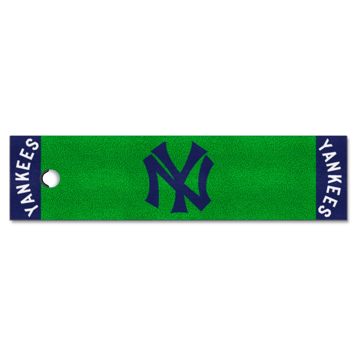 | New York Yankees Putting Green Mat - 1.5ft. x 6ft.1927 Realistic putting surface (11* on golf Stimpmeter) Includes putting target barrier/backstop Durable vinyl backing keeps mat in place 100% Nylon Face Doubles as a runner when not in use Officially licensed and chromojet printed in true team colors MLBCC - New York Yankees in New York MLB Major League Baseball |