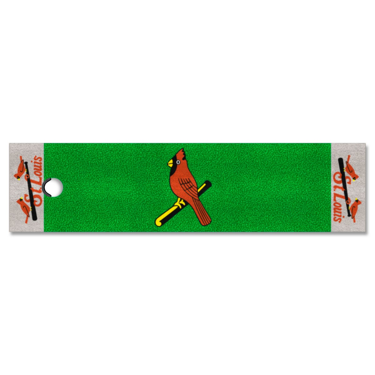 | St. Louis Cardinals Putting Green Mat - 1.5ft. x 6ft. Realistic putting surface (11* on golf Stimpmeter) Includes putting target barrier/backstop Durable vinyl backing keeps mat in place 100% Nylon Face Doubles as a runner when not in use Officially licensed and chromojet printed in true team colors MLBCC - St. Louis Cardinals in Missouri MLB Major League Baseball |