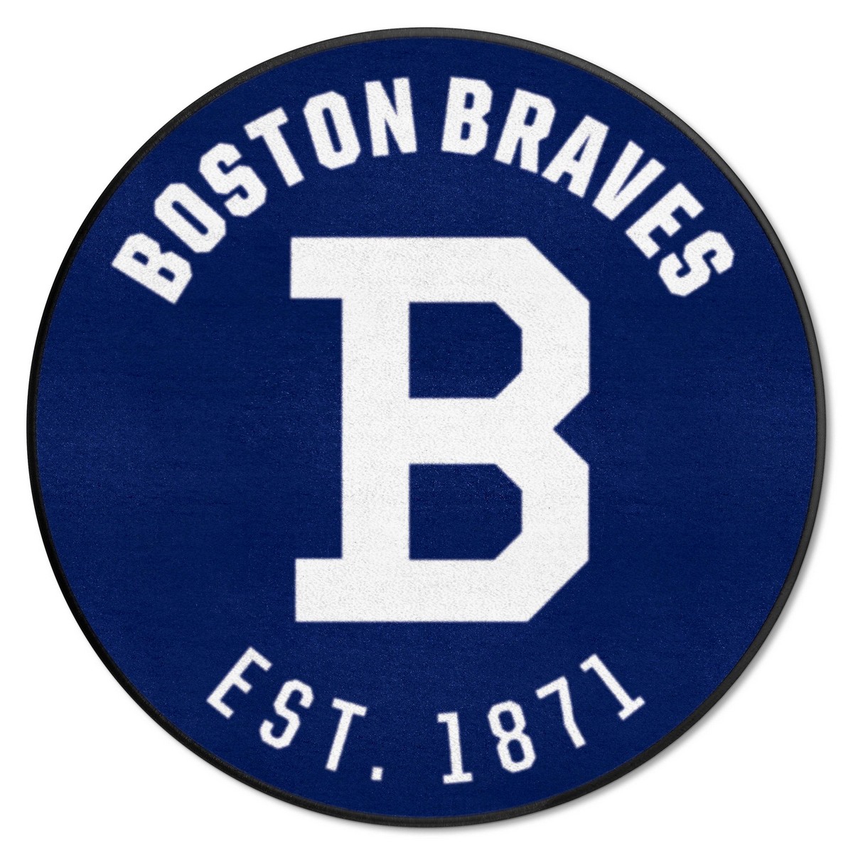 | Boston Braves Roundel Rug - 27in. Diameter 9 Ounce, 100 % Nylon Face Recycled vinyl backing for a durable and longer-lasting product Machine made and tufted in the USA Non-skid backing with taped borders for added durability Machine washable; vacuum regularly and spot clean for any easy and quick clean Officially licensed and chromojet-printed in true team colors for vibrant, lasting color MLBCC - Atlanta Braves in Massachusetts MLB Major League Baseball |