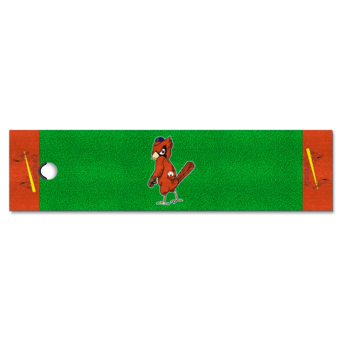 | St. Louis Cardinals Putting Green Mat - 1.5ft. x 6ft. Realistic putting surface (11* on golf Stimpmeter) Includes putting target barrier/backstop Durable vinyl backing keeps mat in place 100% Nylon Face Doubles as a runner when not in use Officially licensed and chromojet printed in true team colors MLBCC - St. Louis Cardinals in Missouri MLB Major League Baseball |