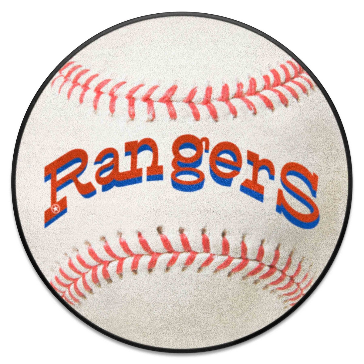 | Texas Rangers Baseball Rug - 27in. Diameter 9 Ounce, 100 % Nylon Face Recycled vinyl backing for a durable and longer-lasting product Machine made and tufted in the USA Non-skid backing with taped borders for added durability Machine washable; vacuum regularly and spot clean for any easy and quick clean Officially licensed and chromojet-printed in true team colors for vibrant, lasting color MLBCC - Texas Rangers in Texas MLB Major League Baseball |